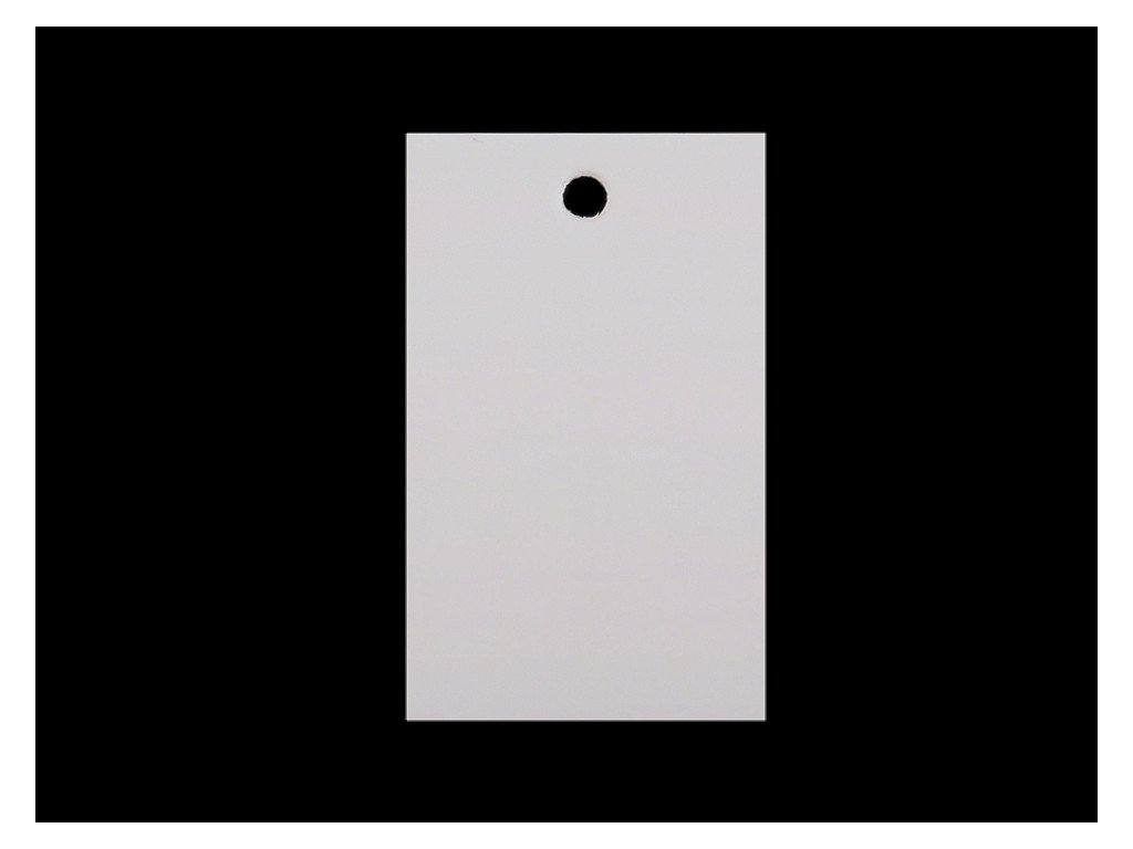 Je vyrobená z pevného papíru, horní strana je křídová, pololesklá. V horní části má vyražený kruhový otvor.