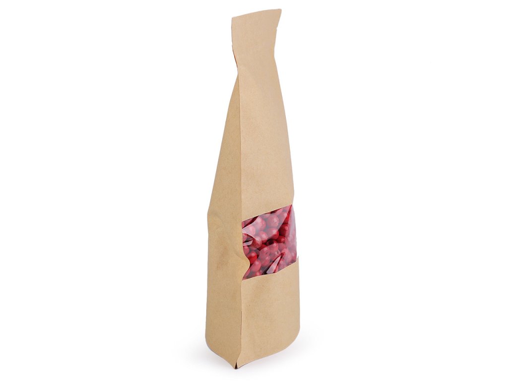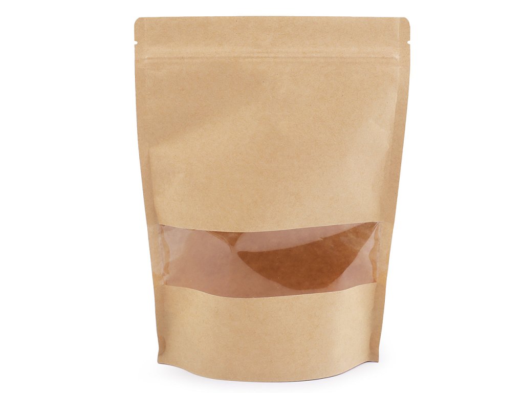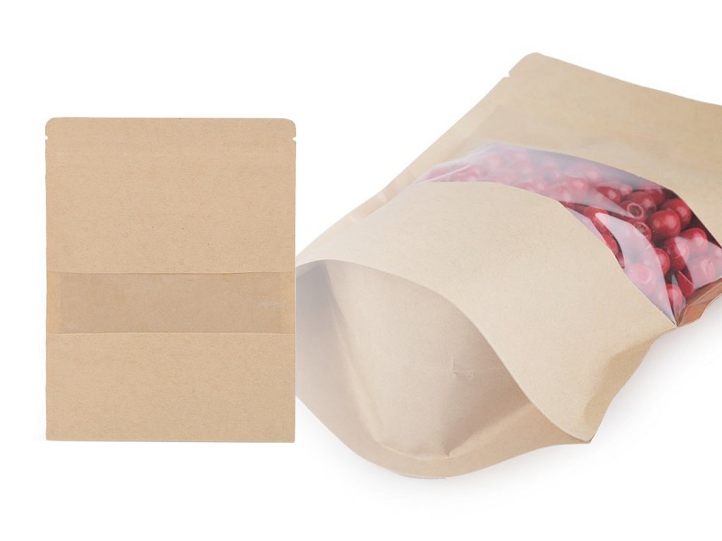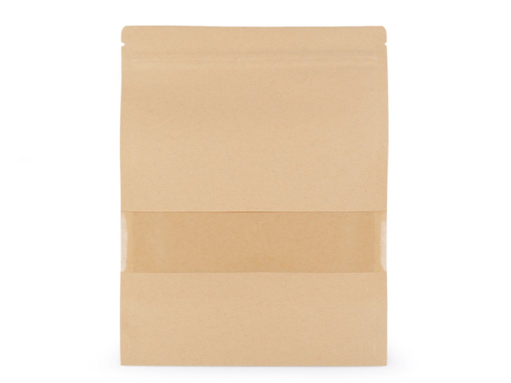 Papírový sáček s průhledem a rychlouzavíratelnou zipovou lištou je praktický pomocník při balení dárků nebo zboží v obchodě. [Sáček má průhled z čelní strany.] Samouzavírací zipovou lištu můžete opakovaně otevírat a zavírat. Papír můžete popsat nebo potisknout razítky.