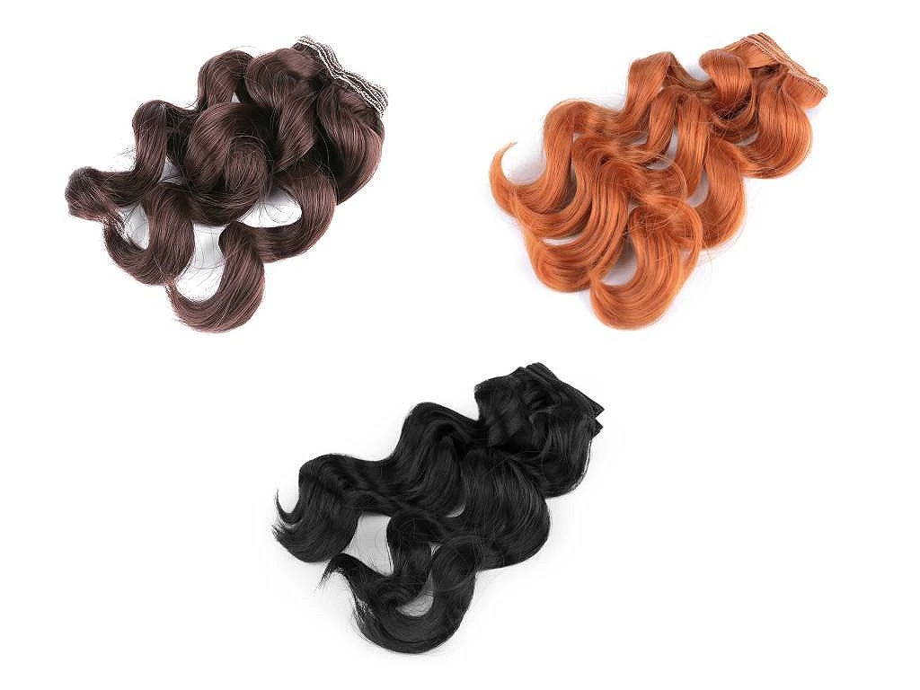 Umělé vlasy pro panenky dotáhnou vaše vyrobené postavičky k dokonalosti. Vlasy jsou vlnité, velmi jemné a příjemné na dotek. Díky pevnému hornímu lemu se dají jednoduše přišít či přilepit. Lem je měkký, dá se dobře tvarovat podle potřeby. Vlasy můžete nůžkami zkrátit na potřebnou délku.
