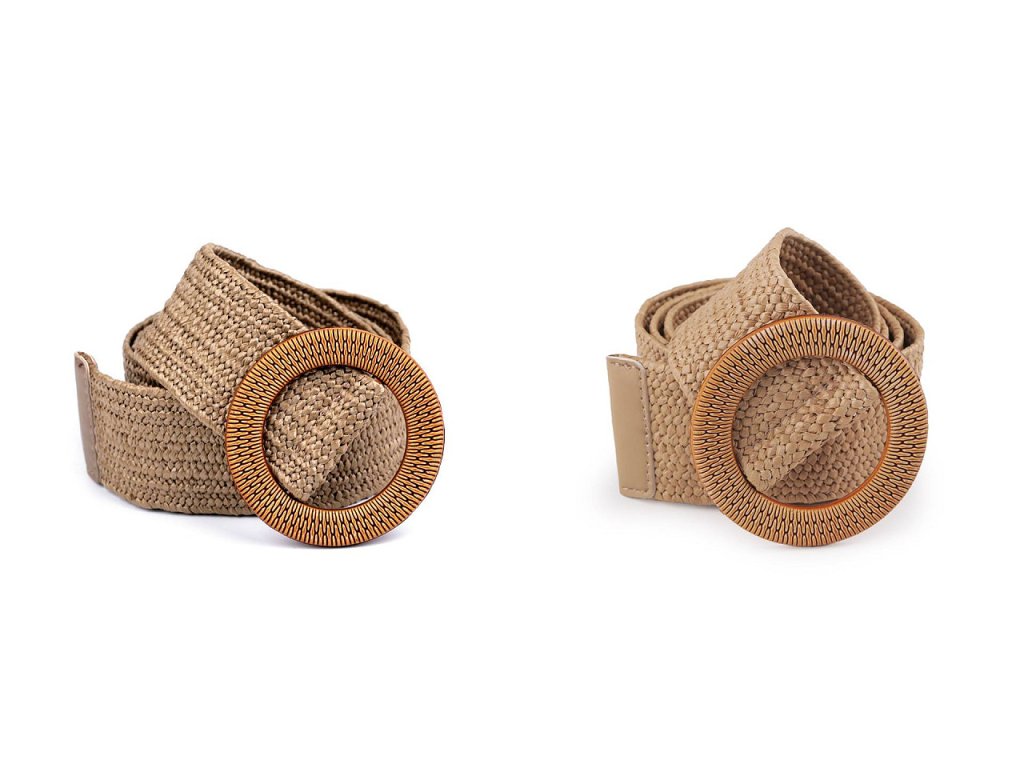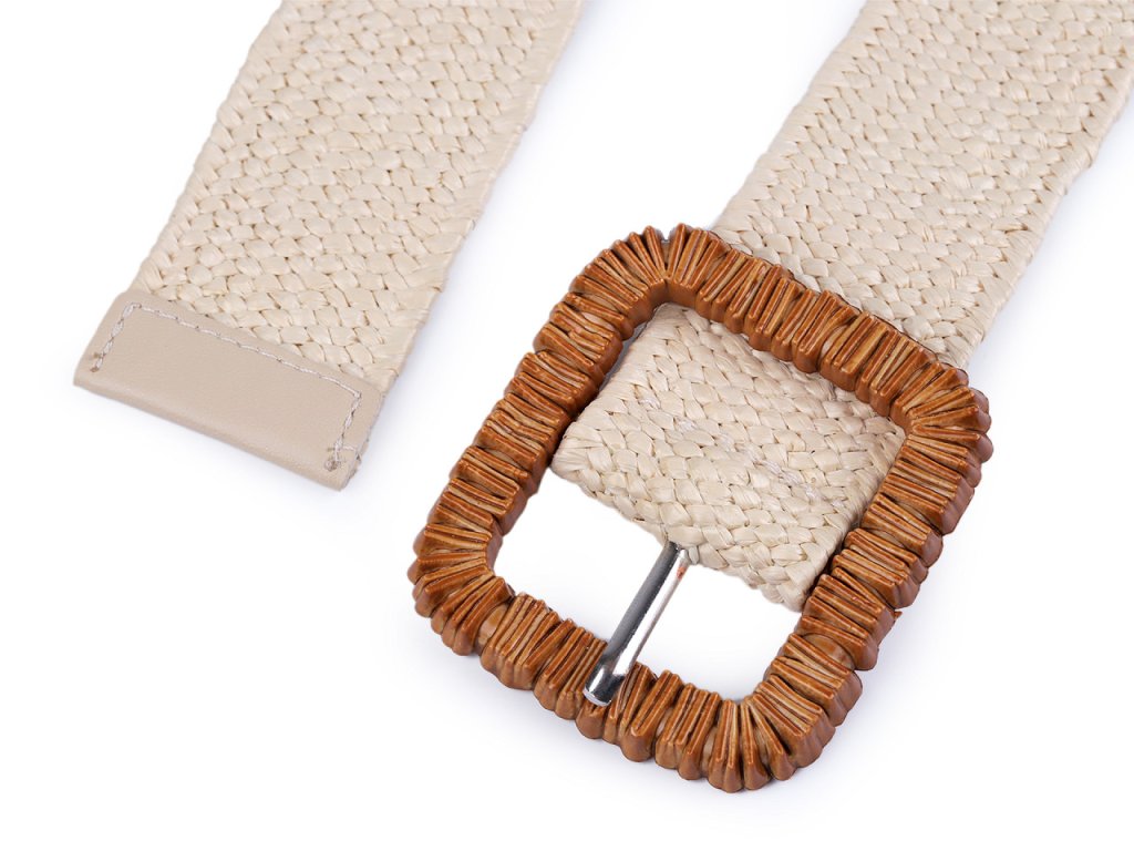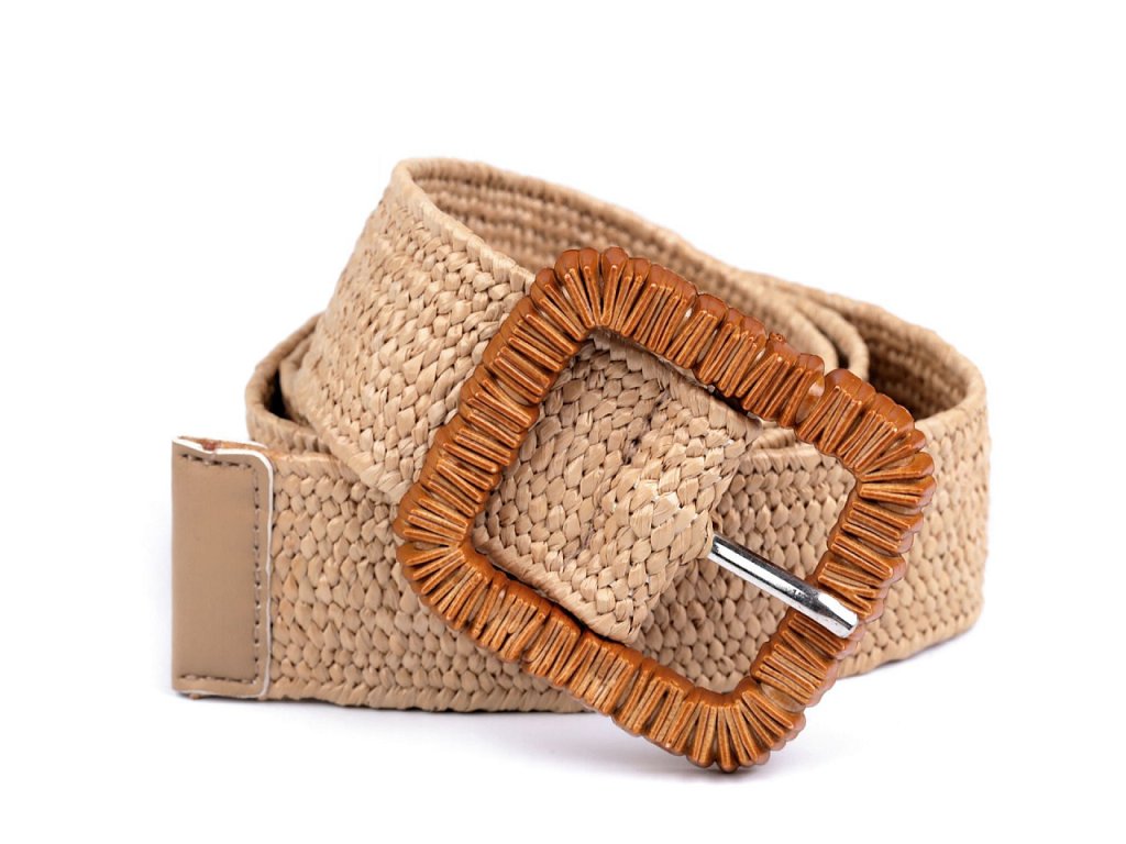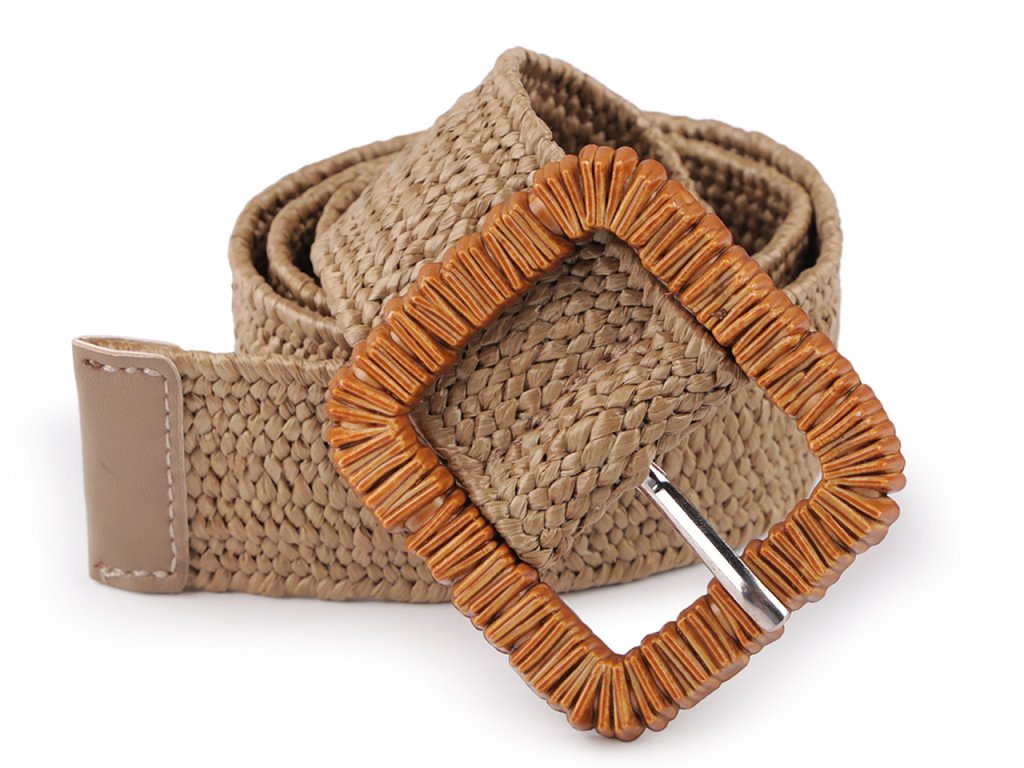 Pružný pásek je velice praktický. Má zajímavou strukturu z navzájem propletených pruženek a imitace juty. Klasická spona na zapnutí, která je zdobená reliéfem připomínajícím dřevo, se díky síťované struktuře pásku dá zapnout v jakékoliv délce.