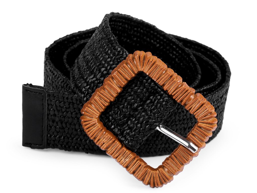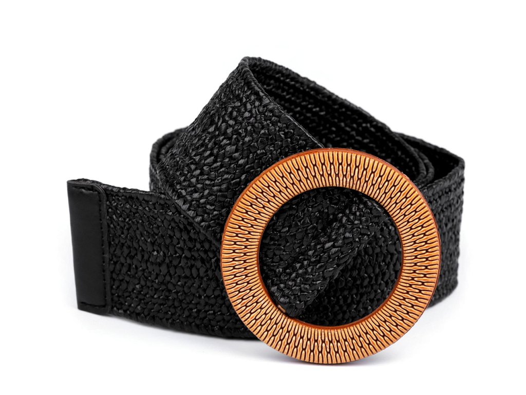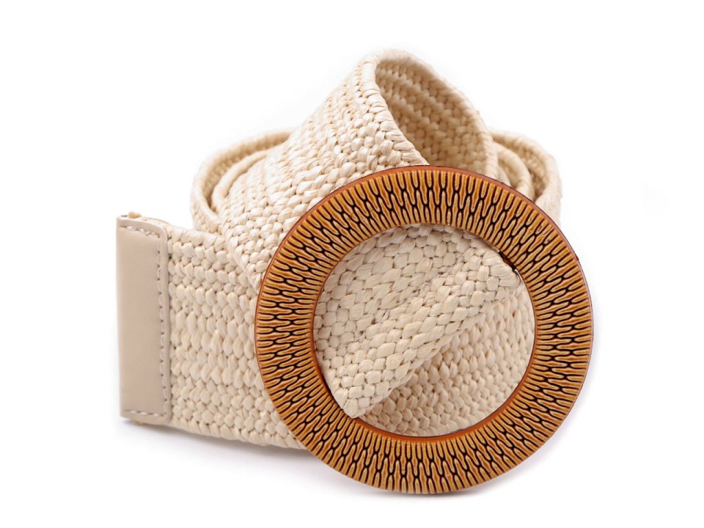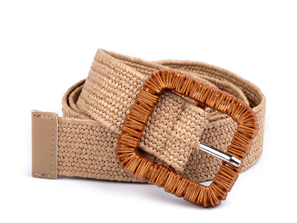 Pružný pásek je velice praktický. Má zajímavou strukturu z navzájem propletených pruženek a imitace juty. Klasická spona na zapnutí, která je zdobená reliéfem připomínajícím dřevo, se díky síťované struktuře pásku dá zapnout v jakékoliv délce.