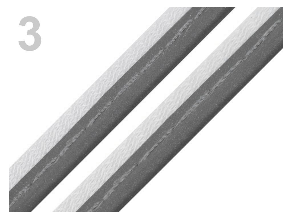 Reflexní výpustek k zvýraznění viditelnosti v zimních měsících. Všívá se mezi dva švy.