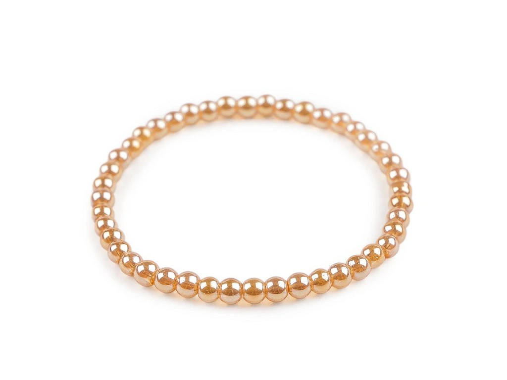 Elegantní náramek z voskovaných perel se efektně leskne. Perly jsou navlečené na pružence, proto se náramek snadno natáhne na ruku. Má univerzální velikost.