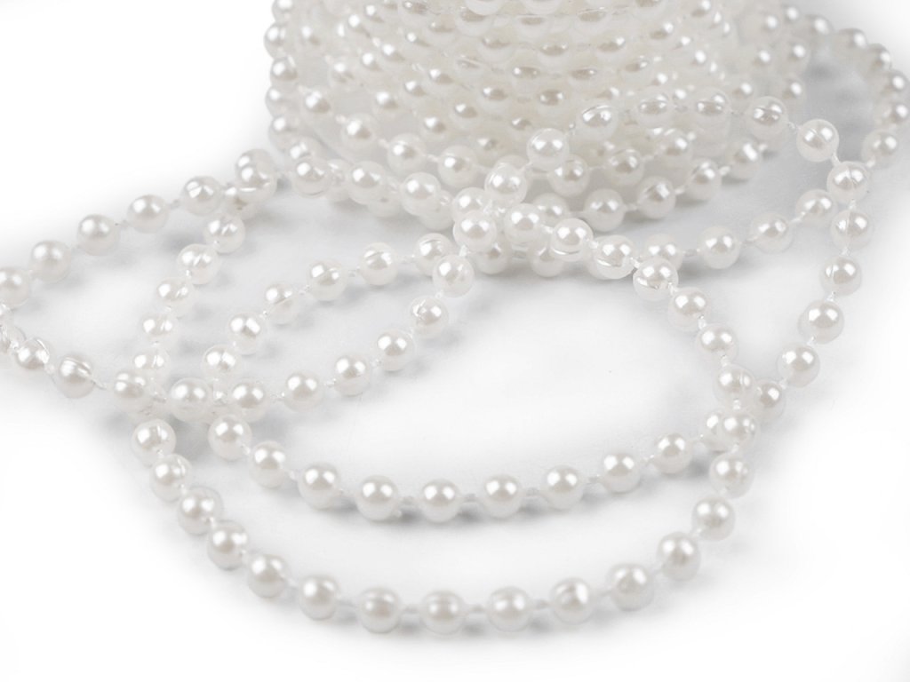 Šňůru plastových perel využijete na vánoční i svatební aranžmá. Je vhodná na ozdobení květinových vazeb, věnců, židlí nebo jako řetěz na stromeček.