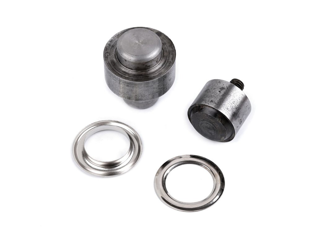 Kovový piston je určený na nitovanie priechodiek a skladá sa z dvoch častí. Používa sa tak, že väčšiu časť pistonu umiestíme v dolnej časti lisu a vložíme látku s priechodkou s vnútorným priemerom 22 mm, ktorú ponúkame pod kódom 060914. Druhú časť zaskrutkujeme do hornej časti lisu.