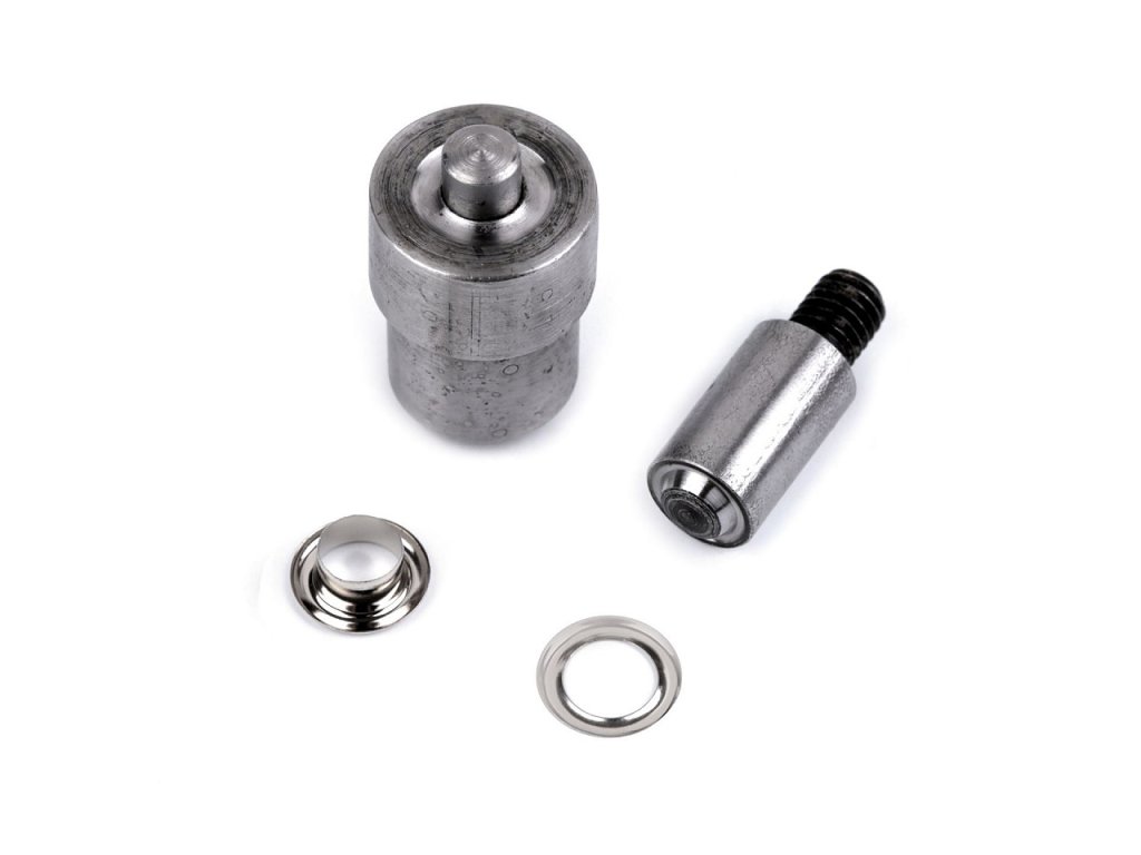 Piston , ktorý sa skladá z dvoch častí, je určený na nitovanie priechodiek. Používa sa tak, že väčšiu časť pistóna umiestnime v dolnej časti lisu a vložíme látku s priechodkou Ø8 mm, ktorú nájdete pod kódom 060916 alebo 890688 . Druhú časť zaskrutkujeme do hornej časti lisu. Závit: M8