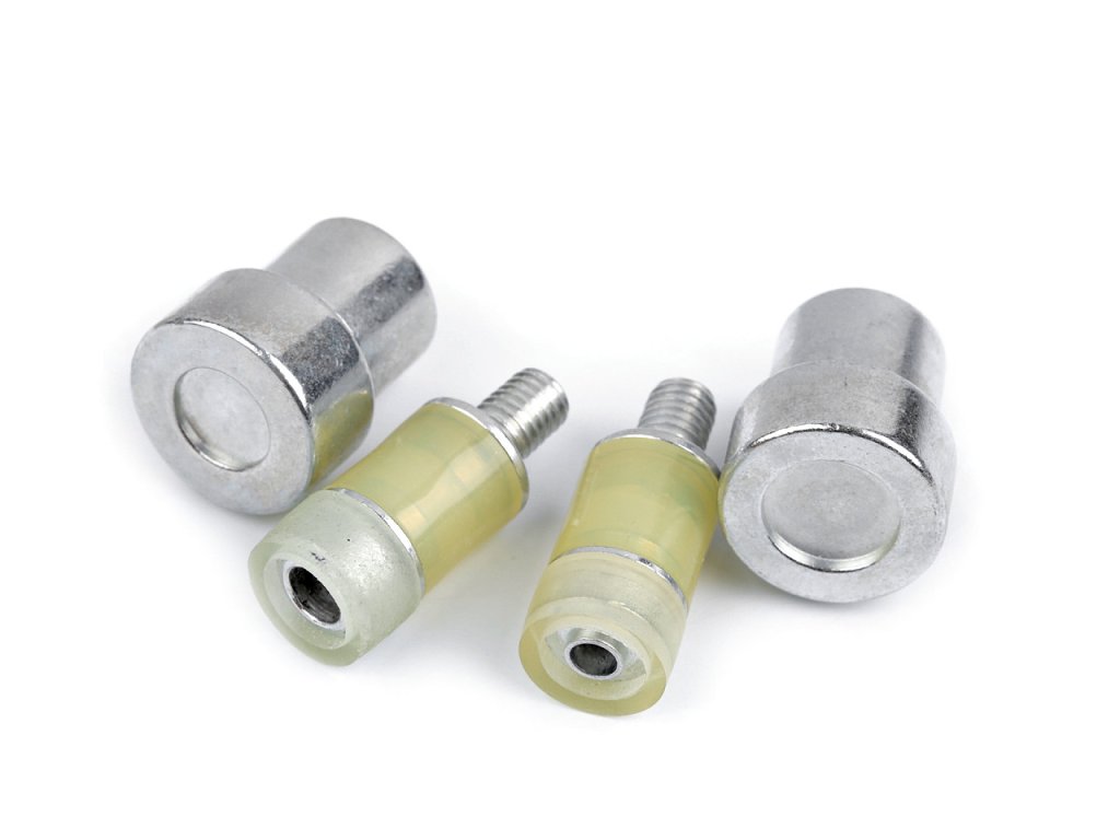 Sada pistonů je určená k nýtování plastových patentek, které najdete pod kódy 080646, 080647, 080648, 890160. Používá se tak, že větší část pistonu umístíme v dolní části lisu a vložíme látku s patentkou. Druhou část zašroubujeme do horní části lisu.