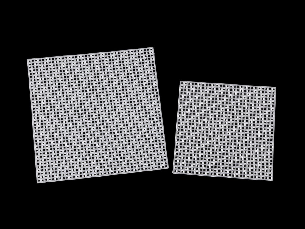 Plastová mriežka je vhodná na výrobu vyšívaných dekorácií. Používa sa hrubšia priadza ako pri bežnom vyšívaní - napr. priadza na pletenie alebo háčkovanie. Plastovú kanavu môžete strihať do požadovaného tvaru a vytvoriť tak jedinečnú dekoráciu. Náš tip: pomocou mriežky si môžete vyrobiť vyšívanú krabičku alebo záložku do knihy. Rozmery jedného štvorčeka sú 3 x 3 mm. Rozmery samotného otvoru sú 2 x 2 mm.