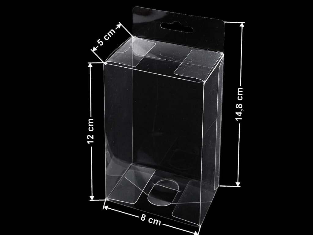 Plastovou průhlednou krabičku se závěsem využijete k dárkovému balení předmětů. Můžete ji použít např. na zabalení broží či ozdob do vlasů nebo drobné dekorace např. malých velikonočních vajíček, rolniček, dřevěných dekoračních ozdob apod.Krabičku dodáváme v rozloženém stavu.