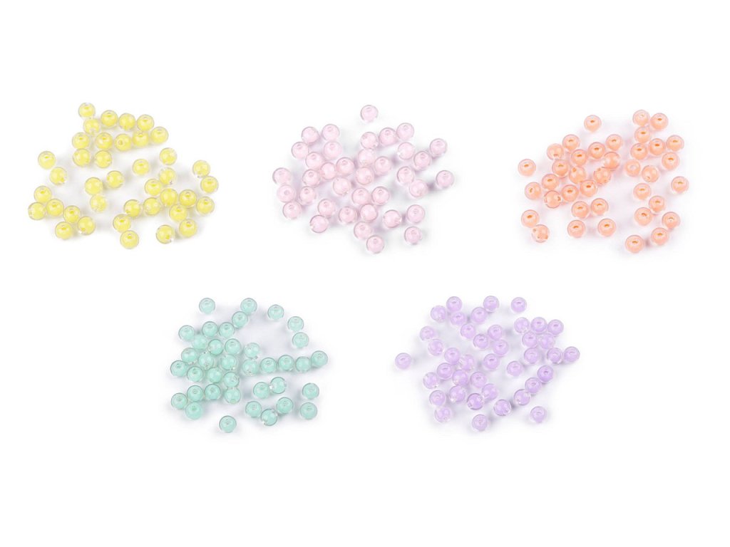 Průhledné plastové korálky s barvou uvnitř jsou velice efektní, oblíbí si je dospělí i děti. Využijete je na výrobu bižuterie, přívěsků ke klíčům apod. Můžete je navlékat například na pruženku či silon.