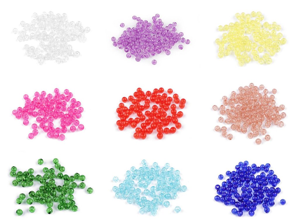 Plastové korálky s efektem kraklé - prasklin lidově nazývaných práskačky, jsou velice variabilní. Mají všechny výhody plastových korálků - jsou lehoučké, mají dostatečně velký průvlek, aby jimi prošly i stužky nebo voskované šňůry. Našim fotografkám se fotografie velmi povedly, ale věřte, že ve skutečnosti jsou korálky ještě zajímavější.