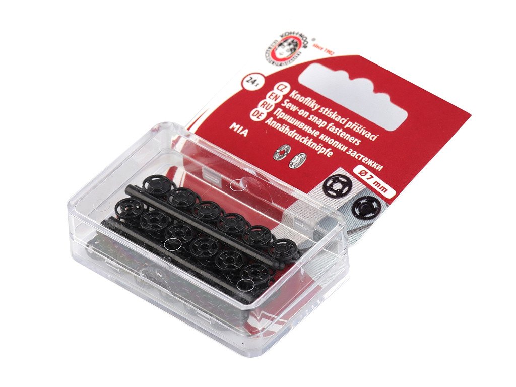 Priemer 7 mm je veľkosť 1/2, v 1 blistre je 24 gombíkov,