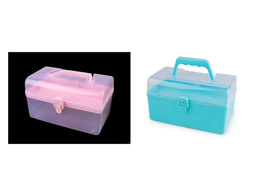 Průhledný zásobník s odnímatelným patrem je praktický pomocník při skladování komponentů a nářadí pro kreativní tvorbu. Má jednoduché pákové uzavírání a rukojeť na pohodlné přenášení. Je vhodný i pro švadleny, které ocení, že je dovnitř vidět.