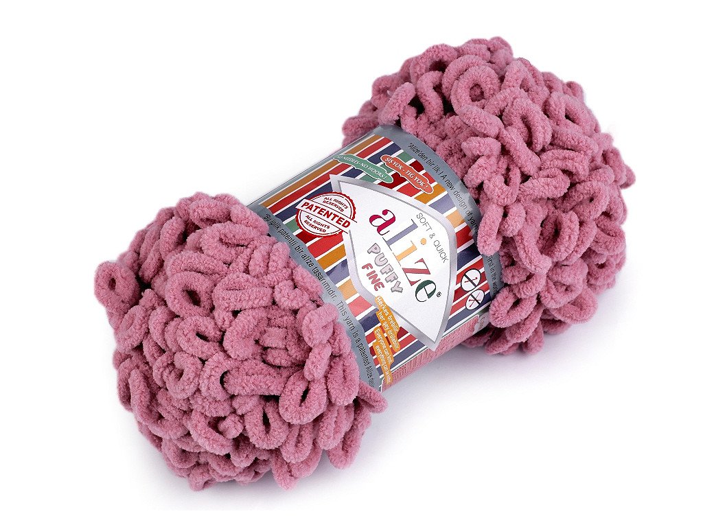Priadza Alize Puffy Fine je mäkká, chlpatá ženilková priadza s veľkými očkami. Na pletenie nepotrebujete ihlice ani háčik - preplietajú sa jednotlivé očká. Je vhodná na pletenie diek, šálov a pod.