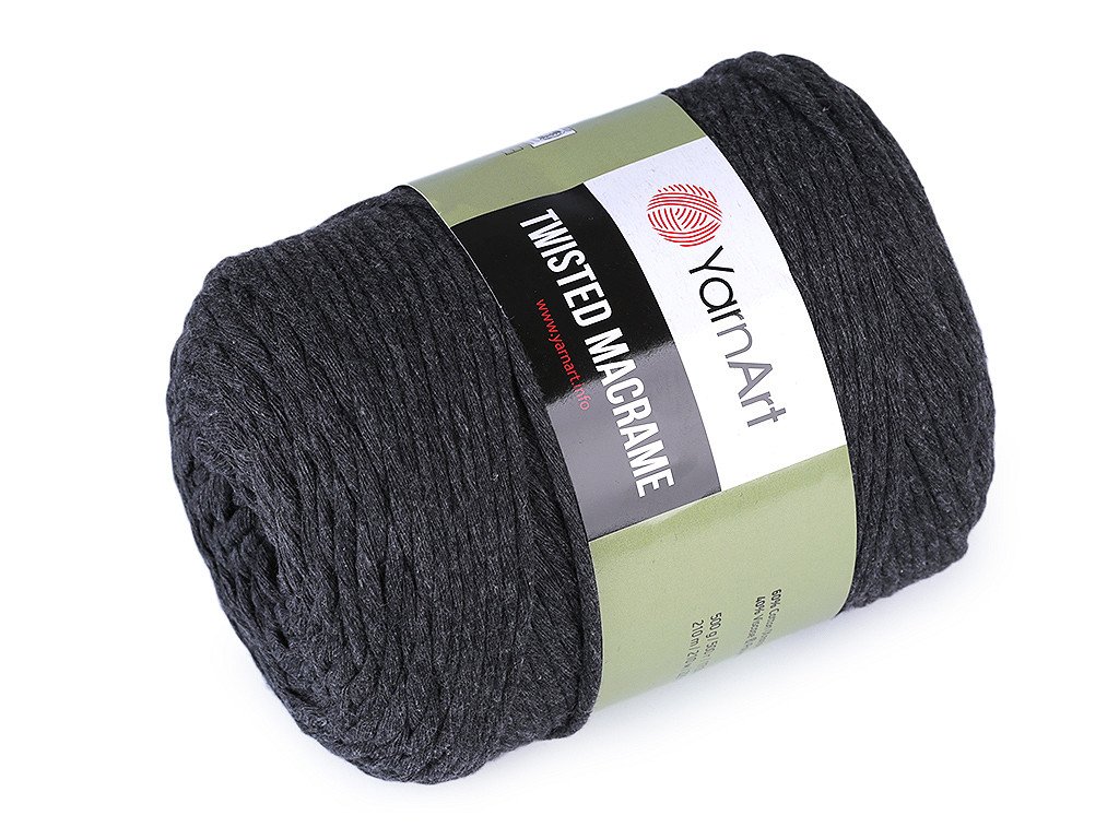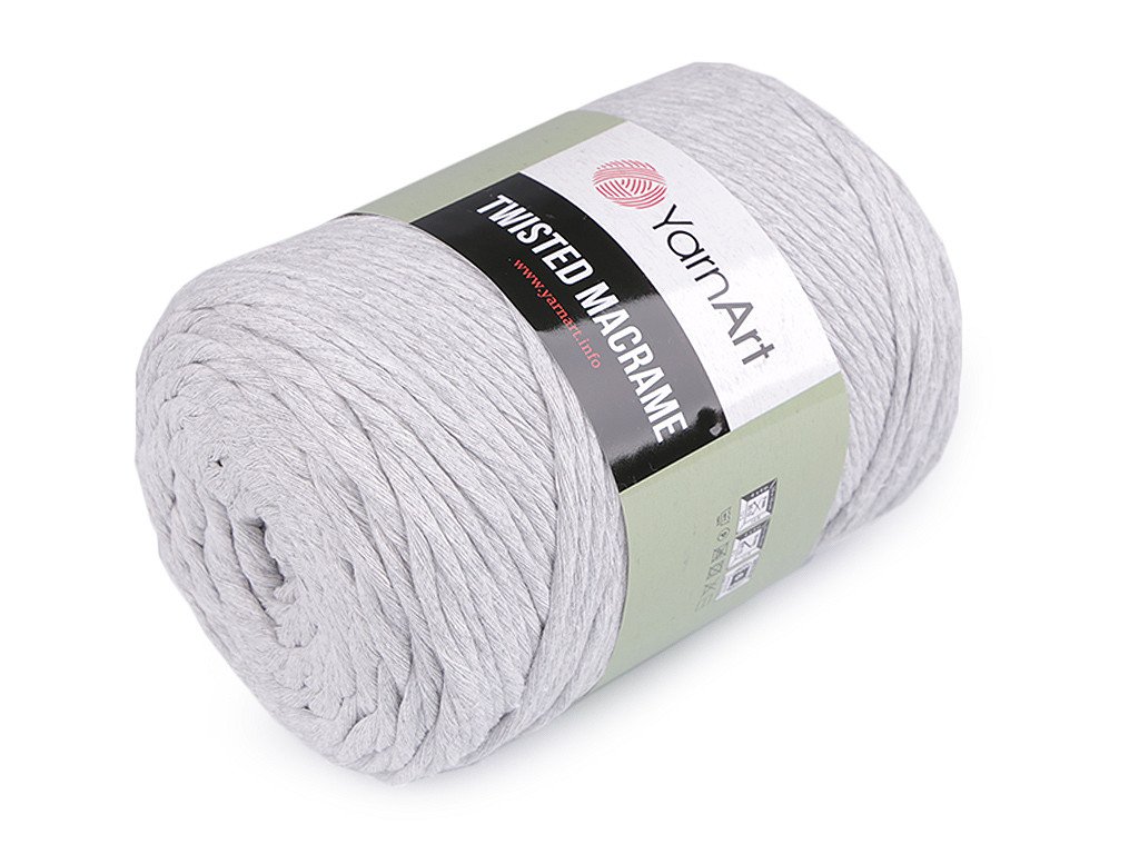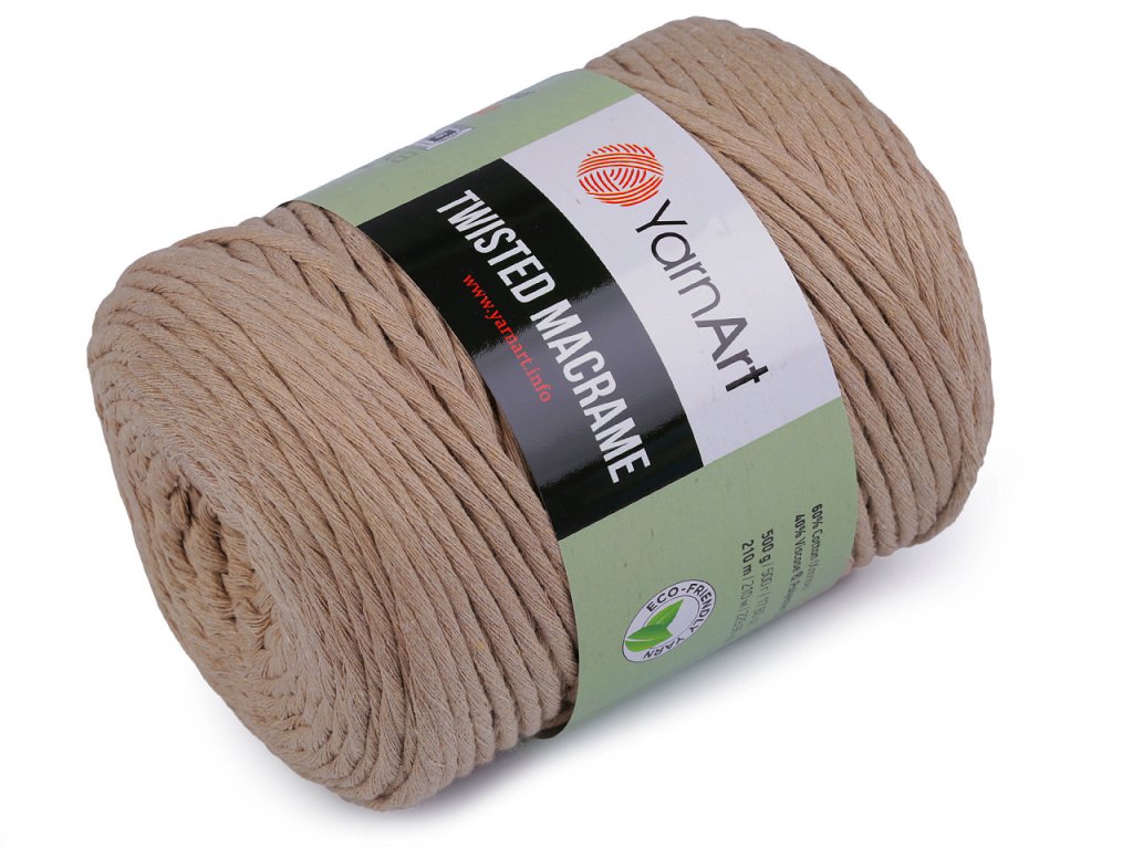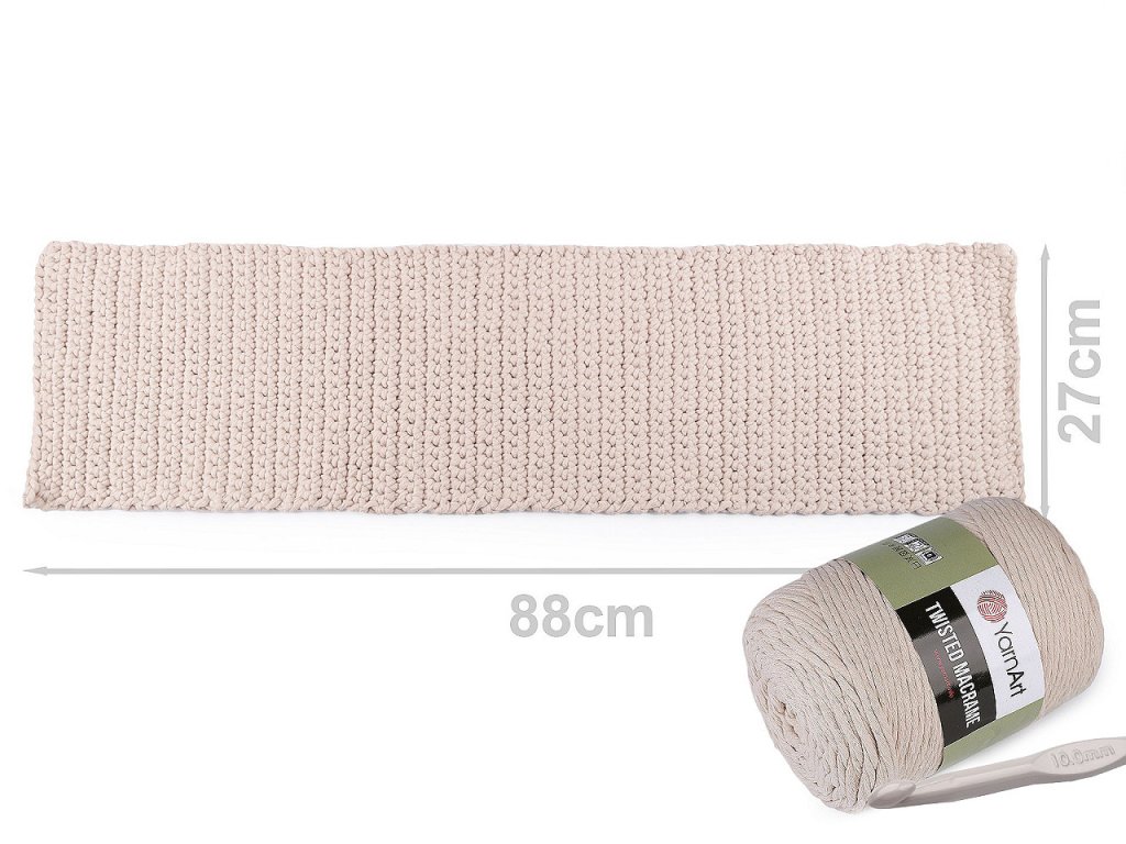 Priadza Twisted Macrame je krútená a pripomína špagát. Využijete ju na pletenie alebo háčkovanie pufov, košíkov, koberčekov aj tašiek. Je vhodná aj na výrobu macramé dekorácií. Veľkosť ihlíc: 9 Veľkosť háčika: 10 Vzorka na fotografii (88 x 27 cm) bola uháčkovaná z 1 klbka, háčikom č. 10.