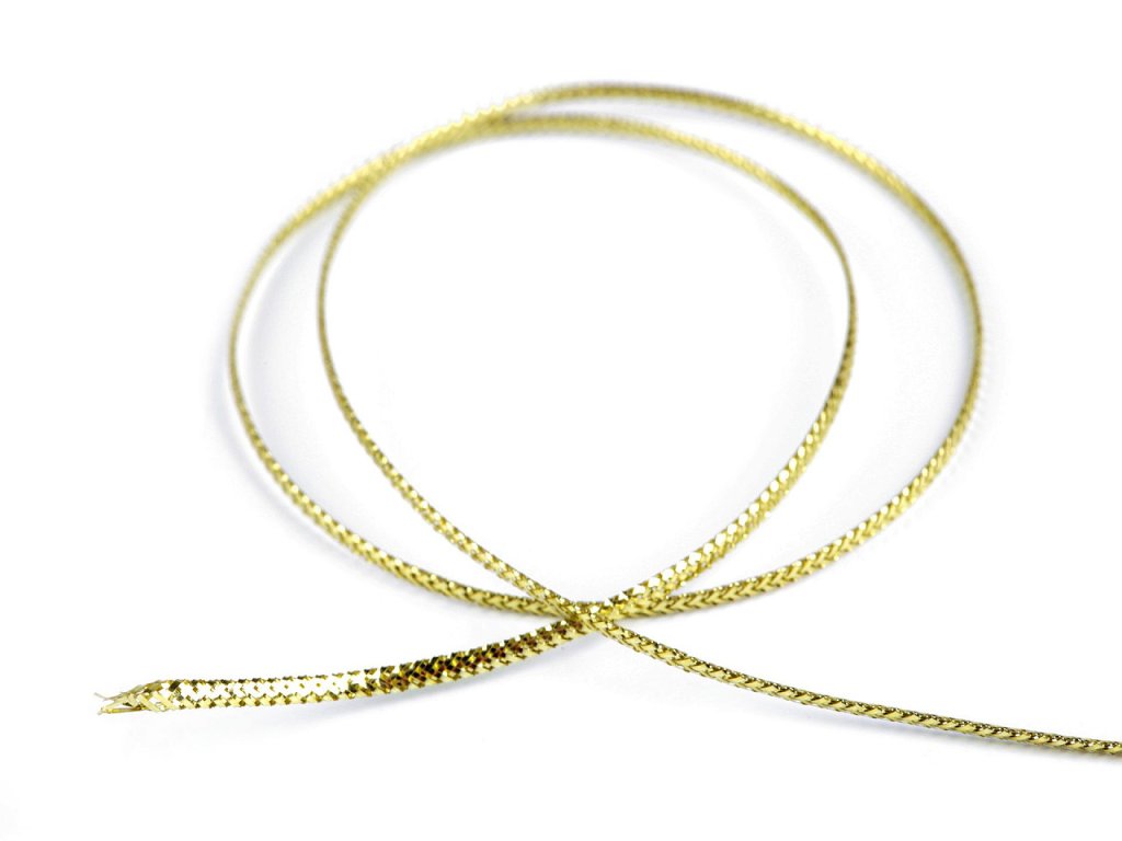 Plochá dutinka s lurexom vyzerá veľmi luxusne, pútavo sa trbliece. Je pevná, nie je pružná.