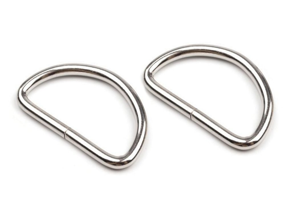 Kovový polokrúžok spona, slúži k prichyteniu popruhov či remeňov ku športovým taškám, batohom, aktovkám a kabelkám.