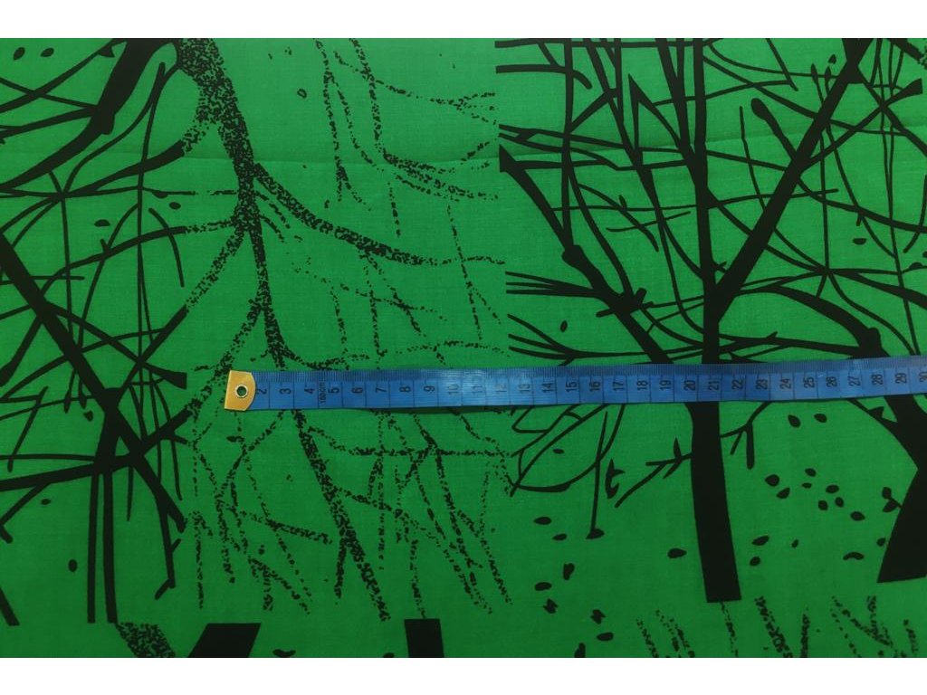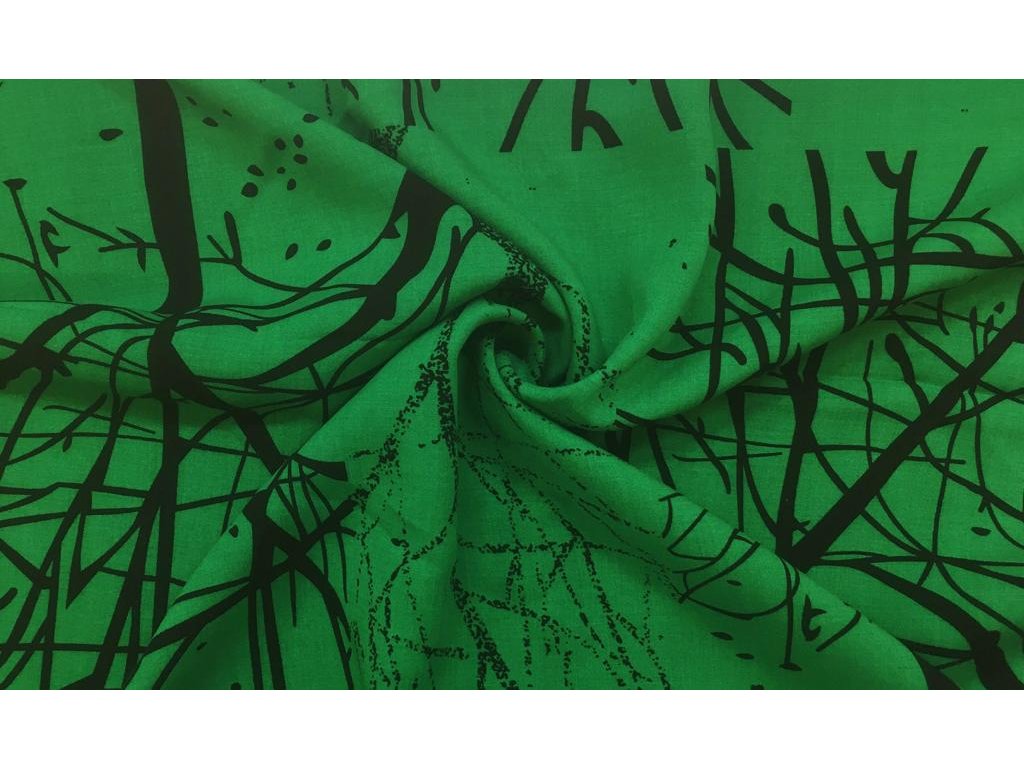 Popelín černé obrysy stromů na zelené