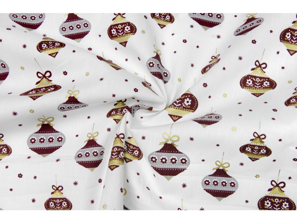 Popelín vánoční ozdoby na bílé