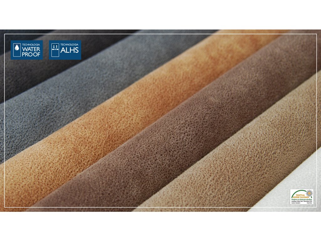Všechny látky v kolekci TOCCARE se vyznačují originální strukturou, extrémní pevností a jednoduchou údržbou. Látka GUSTO je syntetická broušená kůže. Disponuje úpravou WATER BLOCKED pro snadné čištění. Látku lze použít na všechny typy čalounění, jak v domácnosti, tak i ve veřejných prostorách.