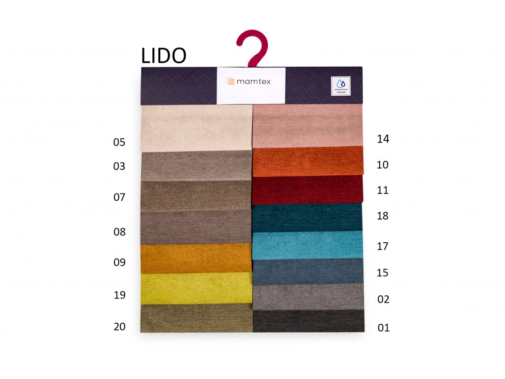 Potahová látka LIDO ze tkaného mikrovlákna je velmi příjemná na dotek. Má úpravu TEFLON pro snadné čištění vodou a úpravu pro domácí mazlíčky.