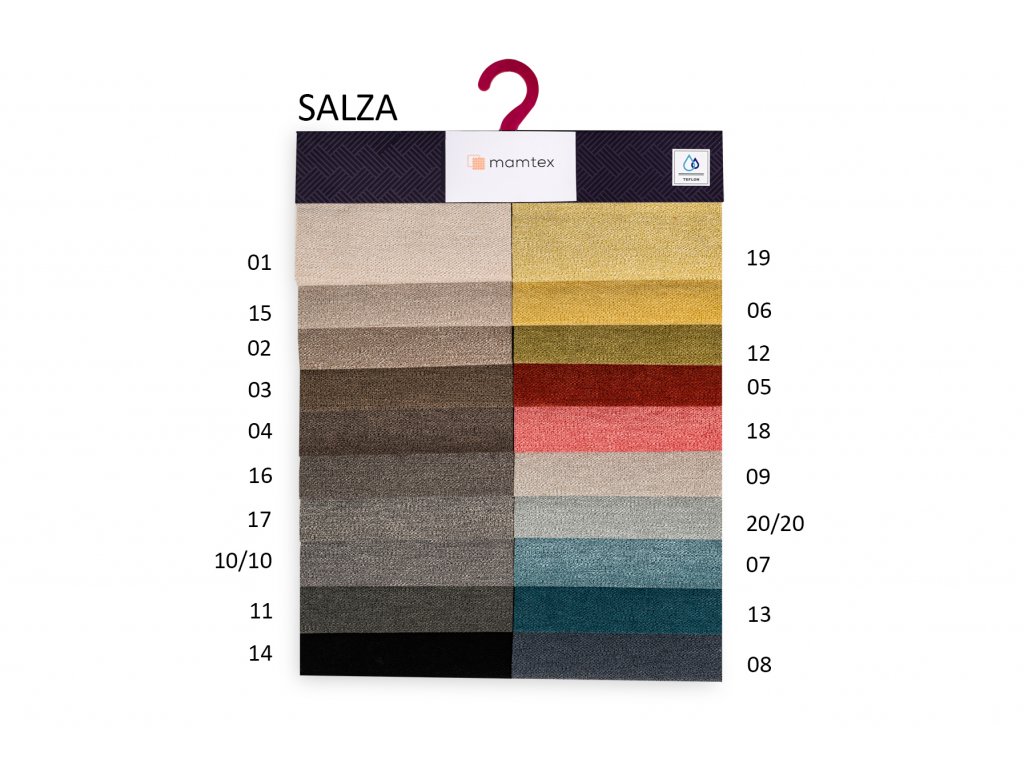 Potahová látka SALZA ze tkaného mikrovlákna je velmi příjemná na dotek. Disponuje vodoodpudivou úpravou EASY CLEAN pro snadné čištění. Je vhodná do bytových i veřejných prostor.
