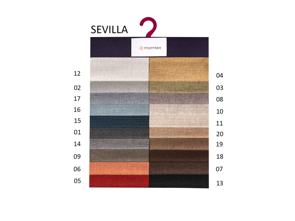 Tkaná potahová látka SEVILLA působí vícebarevným efektem. Je vysoce odolná vůči oděru a disponuje cigaretovým testem EN 1021-1 a nehořlavou úpravou.