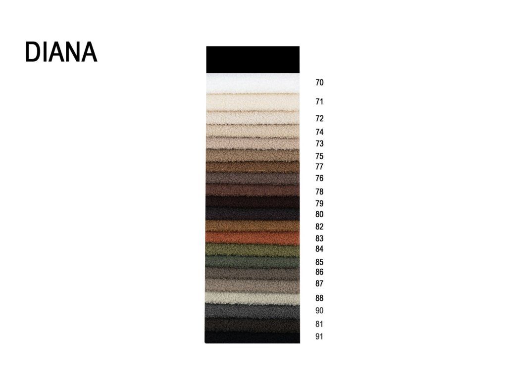 Luxusní potahová látka typu buklé DIANA disponuje smyčkovou strukturou, která vytváří elegantní plastický efekt. Materiál je velmi jemný a příjemný na dotek. Látka je vhodná především do bytových prostor a je nehořlavá dle testu EN 1021-1.