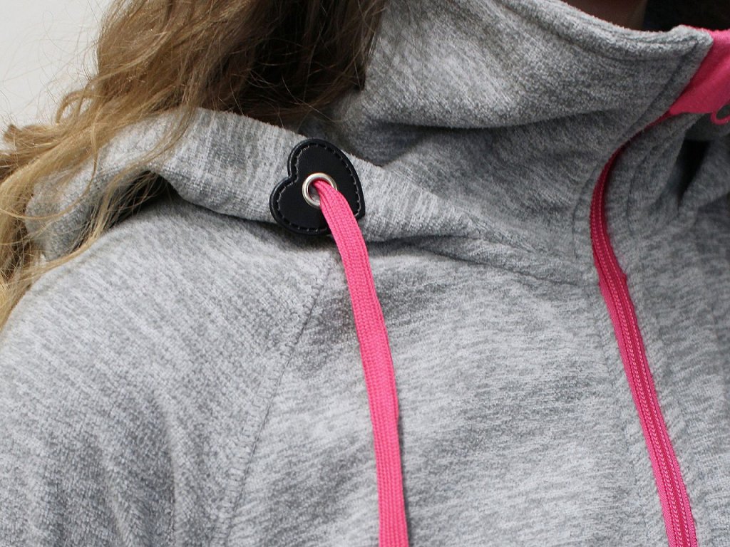 Průchodku s koženkovým srdcem využijete k našití na konce tunýlků u mikin a bund. Používá se i do pasu bund, zajímavě se tak začistí okraje dírek u stahovacích šňůrek. Je vhodná také do výstřihů nebo švů na bocích triček, halenek a šatů, kdy skrz ni můžete provléct šňůru.
