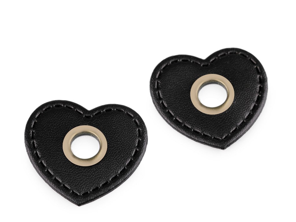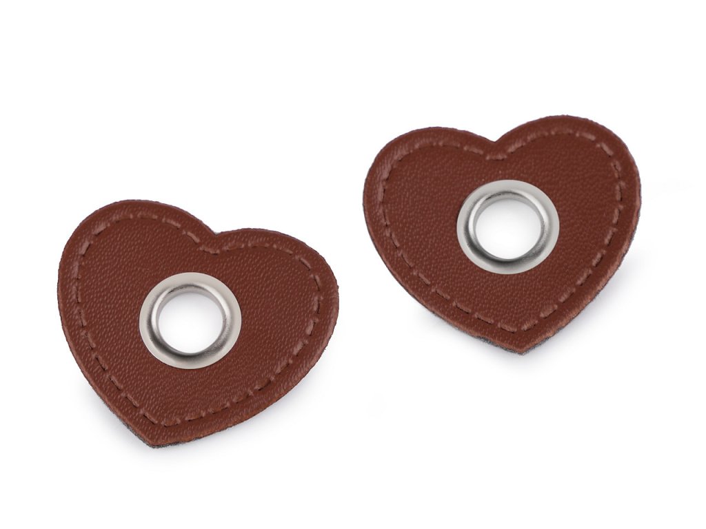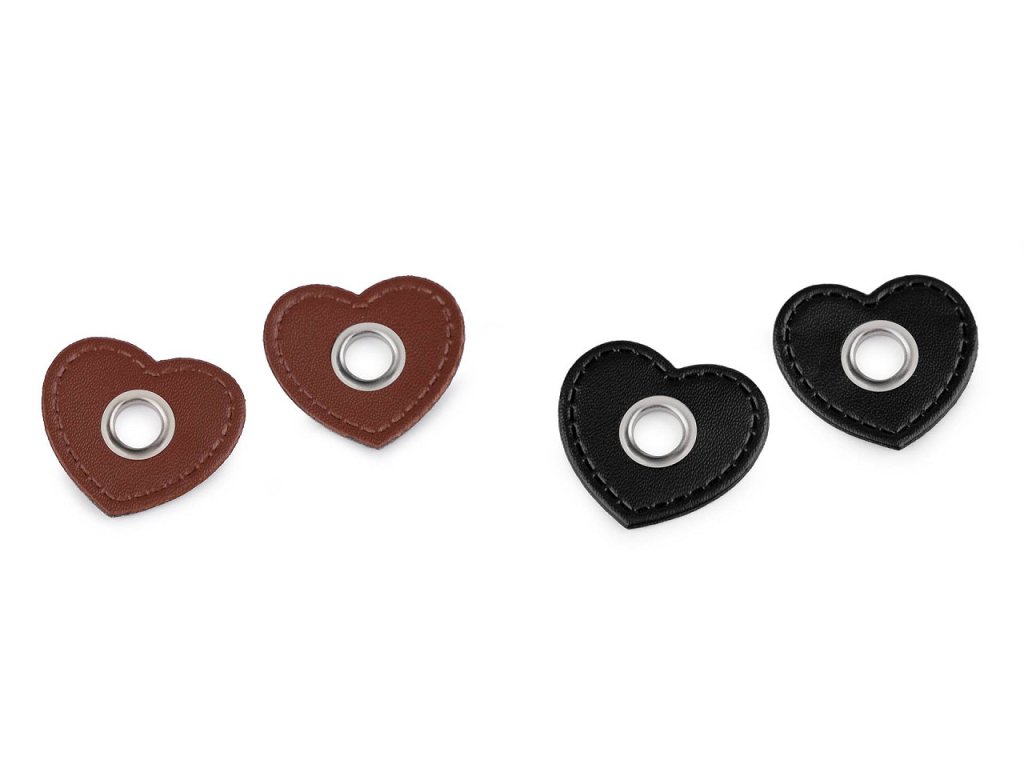 Průchodka s koženkovým srdcem k našití, průvlek 8 mm