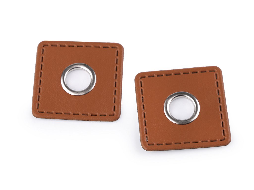 Průchodka s koženkovým čtverečkem na našití , průvlak 10 mm