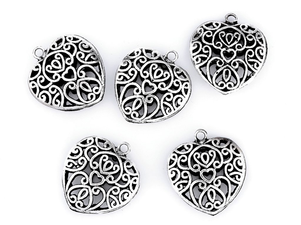 Kovový přívěsek ve tvaru srdce využijete mnoha způsoby. Je oboustranný, z nemagnetického kovu.