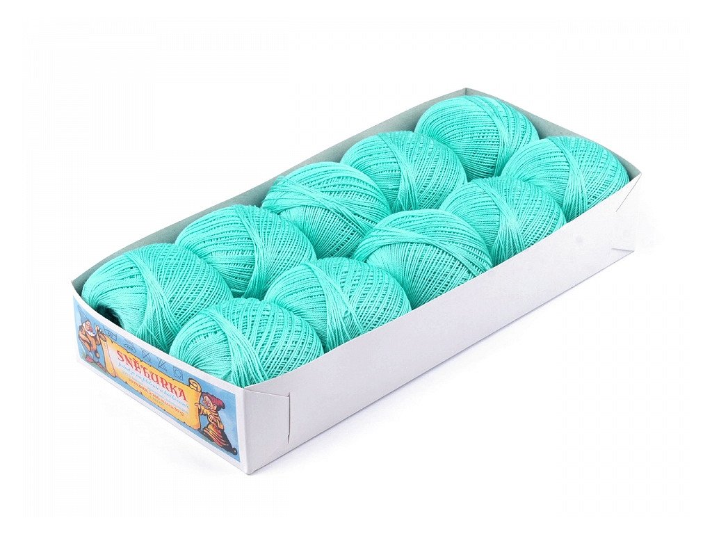Háčkovací/pletací příze, tex50x3, 10 klubek (30g-200m) v krabičce. Čísla 50x3 znamenají: 50tex je číslování váhové (rozhodující je váha - hmotnost určité délky nitě). Zde platí pravidlo: Čím vyšší je číslo, tím hrubší je příze. Číslo 3 znamená, že nit se skládá ze 3 jednoduchých nití.