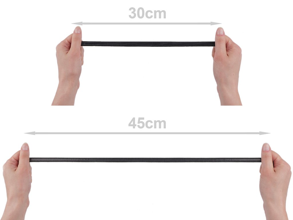Pruženka má na jedné straně uprostřed silikonový proužek o šíři 7,5 mm, díky němu je protiskluzová. Využijete ji nejen na spodní prádlo, ale převážně se používá i na sportovní oblečení.