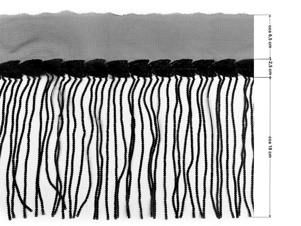 Prýmek monofilový s flitrovými třásněmi šíře 20 cm