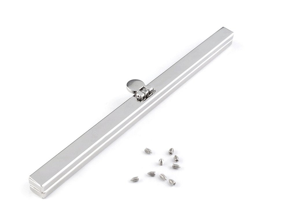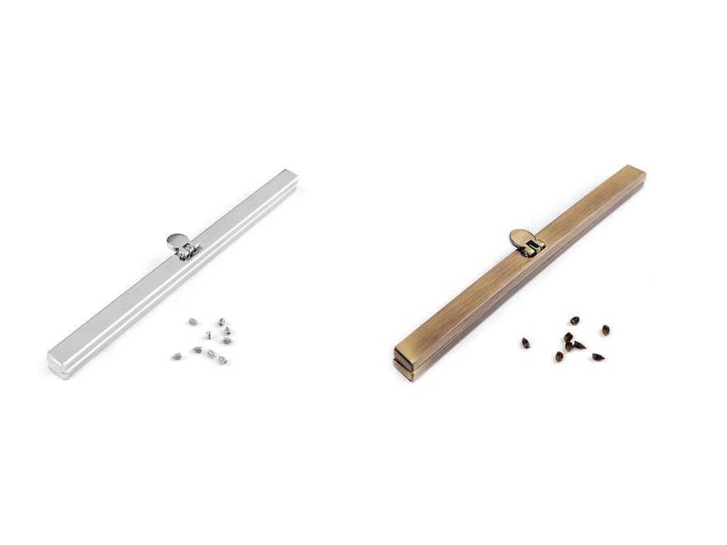Kovový rámček využijete na výrobu kabeliek. Jedná sa o vkladací typ rámčeka, pri ktorom sa látka vloží dovnútra, upevní pribalenými šrobkami (8 ks) alebo lepidlom (doporučujeme chemoprénový typ lepidla) a kliešťami sa čeluste rámčeka stiahnu k sebe. Rámček má elegantný design.