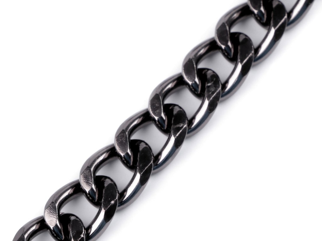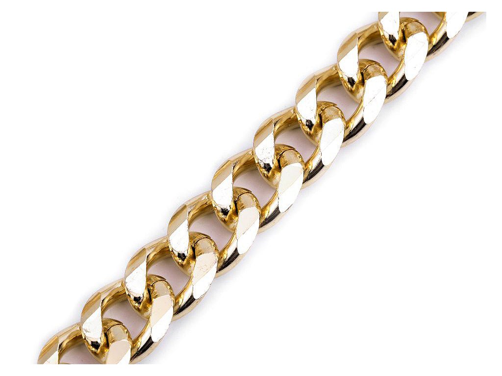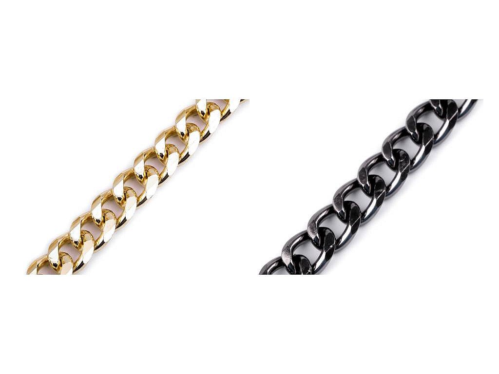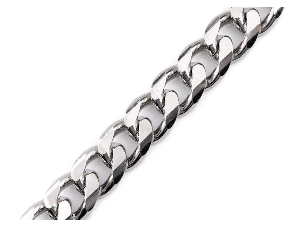 Reťaz je vyrobená z pevného a kvalitného prateľného materiálu. Využijete ho predovšetkým na uchá kabeliek a tašiek, prípadne na ozdobenie odevov a topánok. K reťazi nedodávame zakončovacie karabínky. Hmotnosť 1 m reťaze je cca 100 g , takže sa jedná o ľahkú reťaz.
