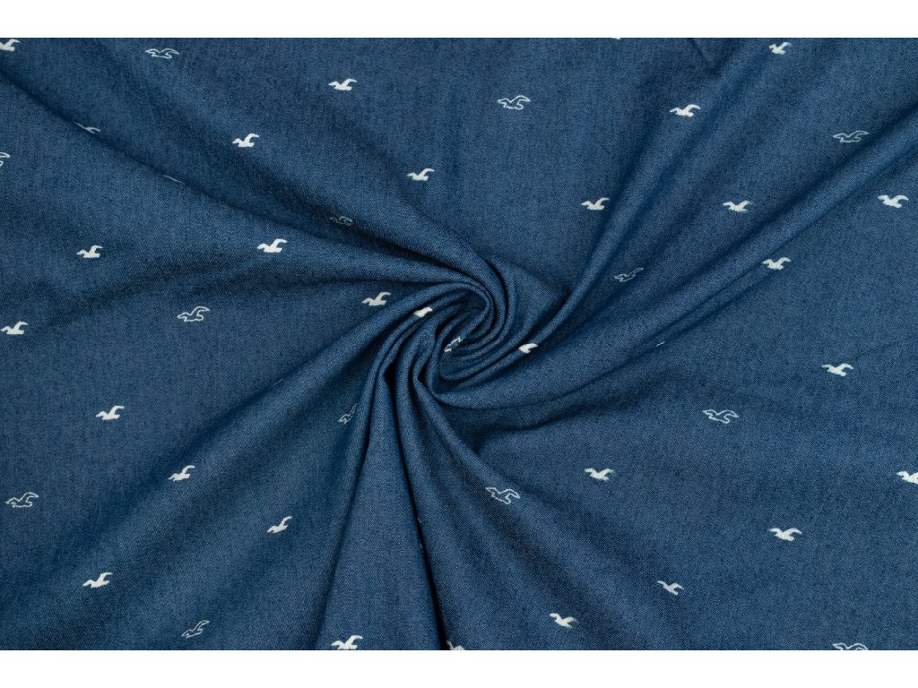 Rifľovina košeľová svetlomodrá biely vtáčik