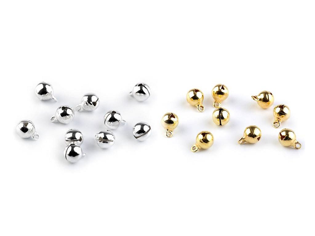 Drobné kovové rolničky standardní kvality, určeny pouze k dekoračním účelům - například na vánoční věnce. Zvoní tlumeněji. Průměr rolniček je cca 7,6 mm, může se mírně lišit. Průvlek je 2 mm. Celková velikost rolničky včetně očka je 11 mm.
