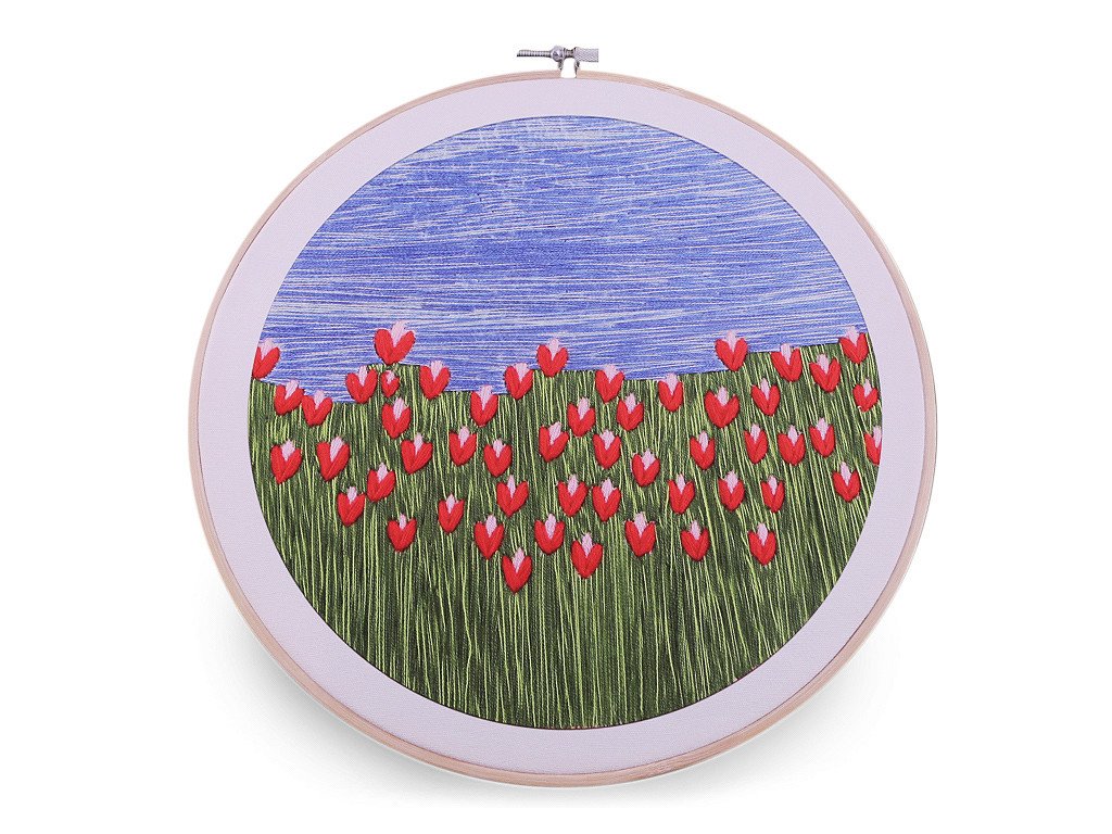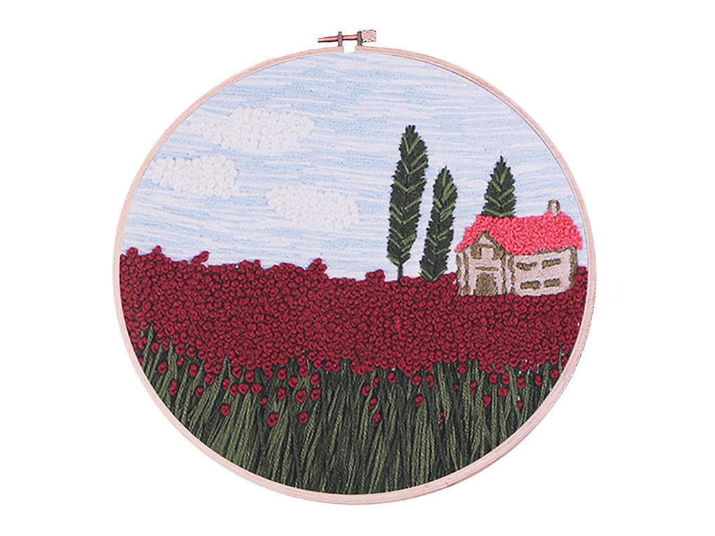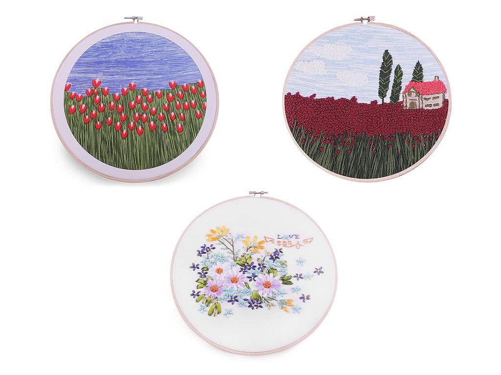So sadou na vyšívanie vytvoríte efektné obrazy krajiniek. Vyšíva sa na predtlačenú tkaninu pomocou priadze mouline.