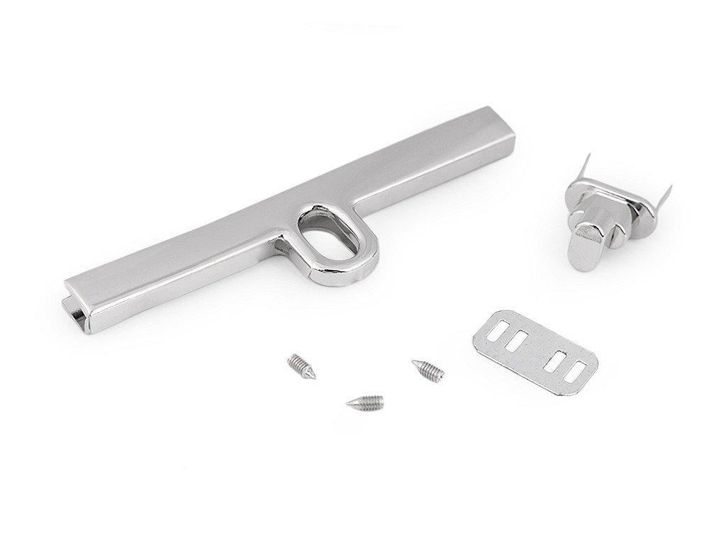 Otočné zapínání je vhodné na kabelky a tašky s klopou. Jeden díl připevníte pomocí přiložených šroubků do klopy. Druhý díl připevníte pomocí plíšku, skrz který ohnete nožičky.