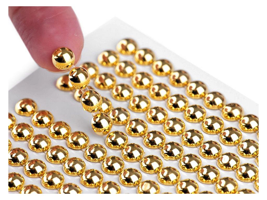 Polo guľaté samolepiace perly s metalickým leskom využijete na dekorovanie v technike scrapbooking.