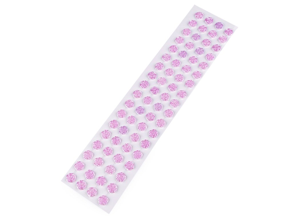Kamienky v tvare ruží s perlovým leskom vyzerajú úžasne. Všetky sú nalepené na jednom archu podkladovej fólie, z ktorej ich stačí sňať. Ruže sú v radoch navzájom spojené lepiacim prúžkom, takže tvoria pásiky. Môžete ho aj jednotlivo nastrihať. Samolepiace ruže sú vhodné na scrapbooking . Odporúčame ich lepiť na suchý, hladký a pevný povrch. Využijete ich na zdobenie mobilov, tabletov, počítačov, prianí, krabičiek, rámčekov fotografií, kvetináčov, fotoalbumov a pod.