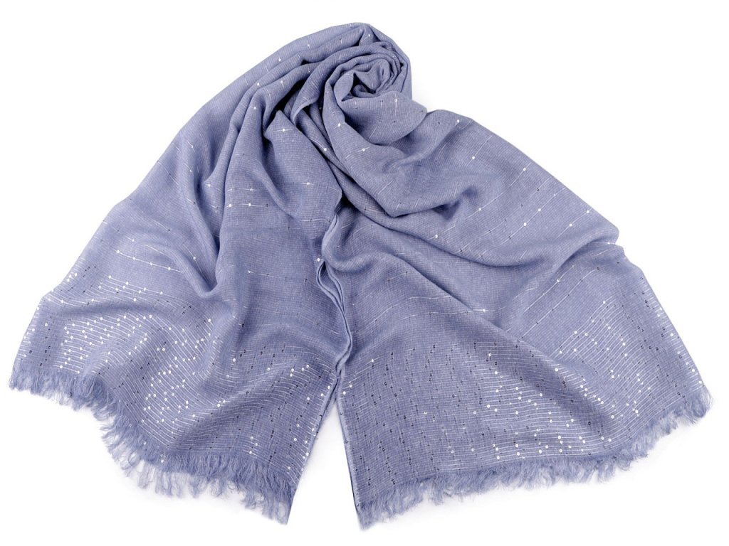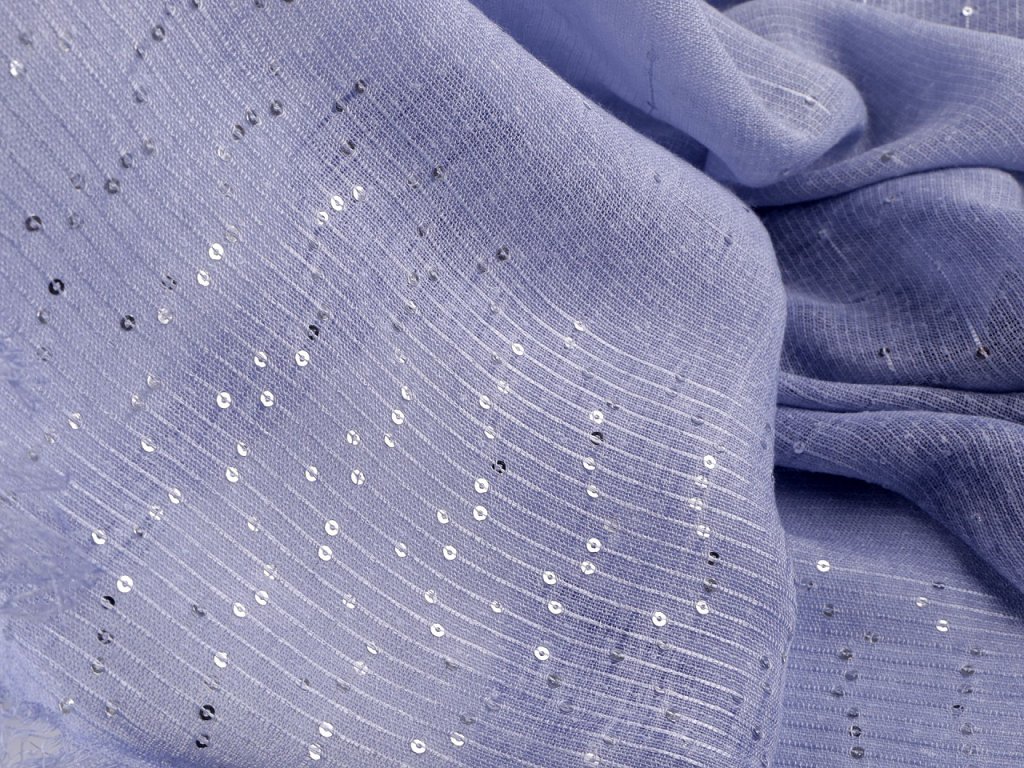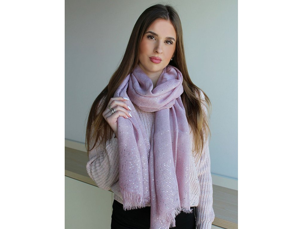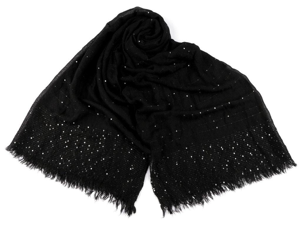 Elegantní bavlněný šátek s drobnými flitry je dokonalým doplňkem pro každou příležitost. Je oboustranný, flitry krásně zachycují světlo, vašemu outfitu dodají nádech luxusu. Materiál šátku je jemný a příjemný na dotek. Konce šátku jsou ozdobené jemnými třásněmi dlouhými 2 cm.