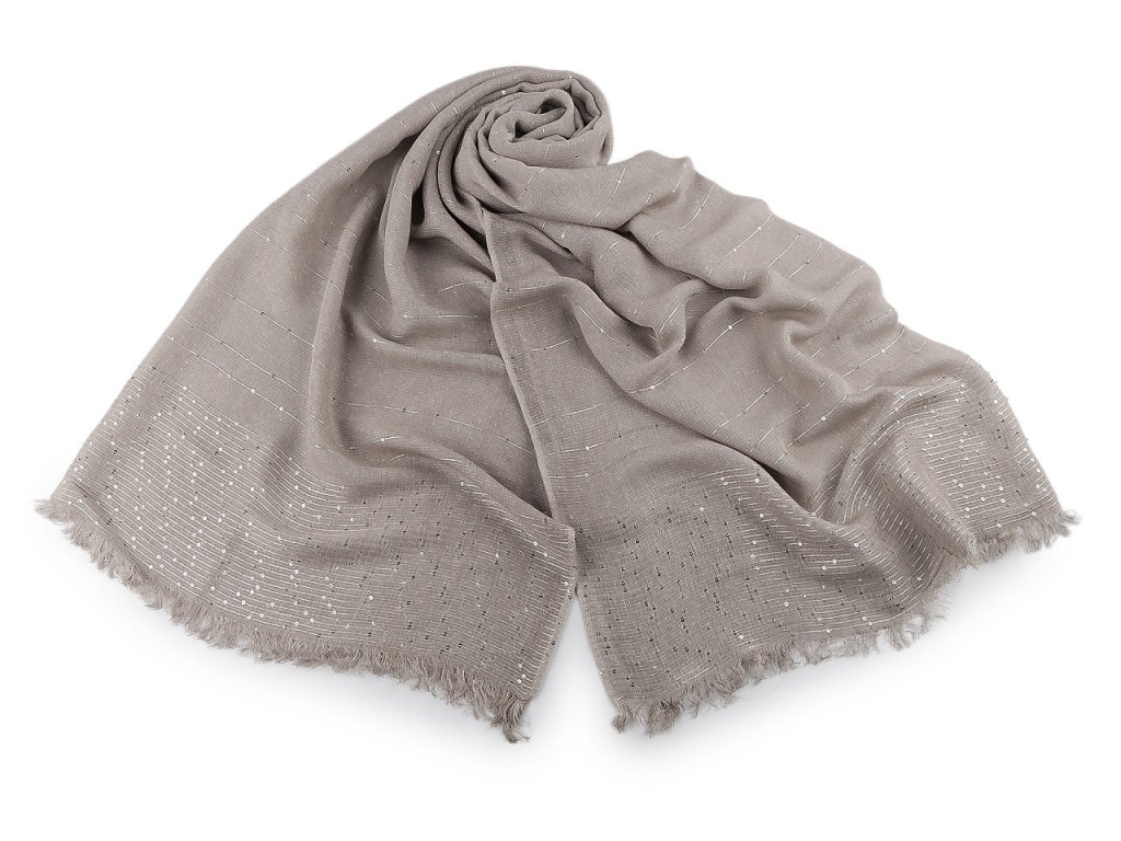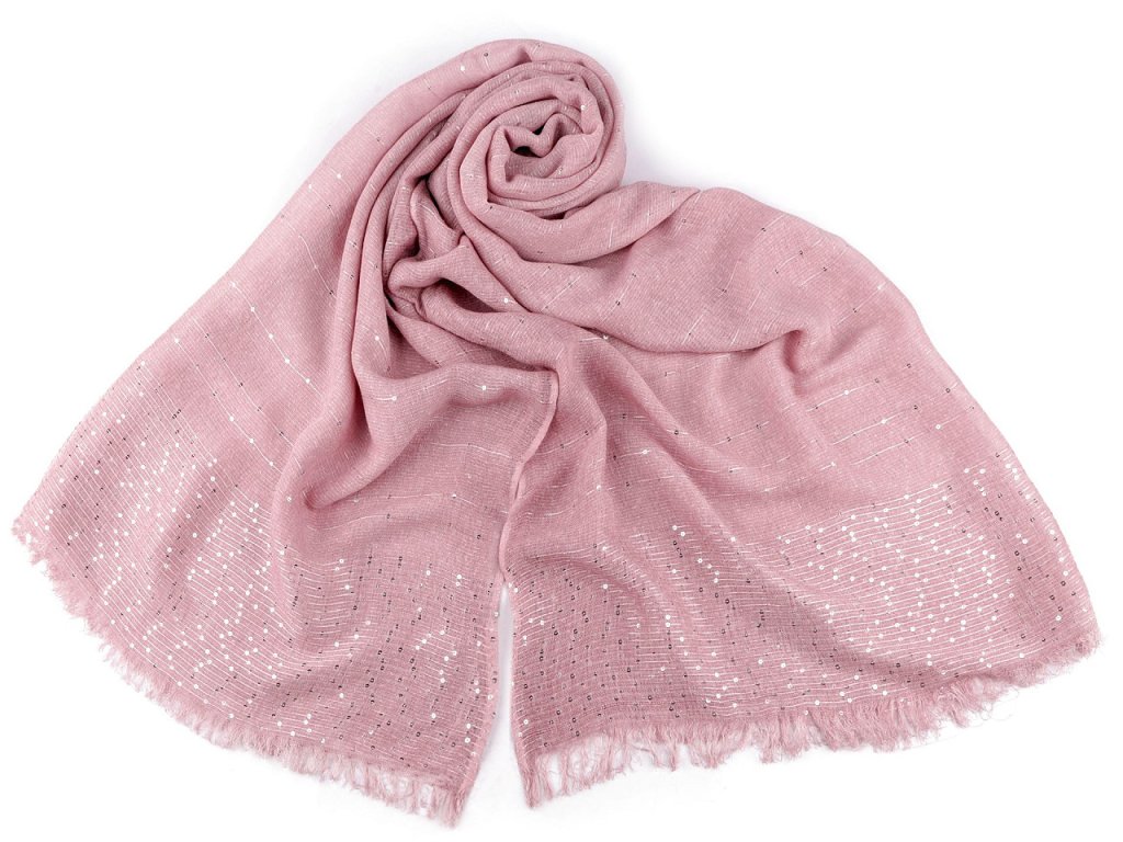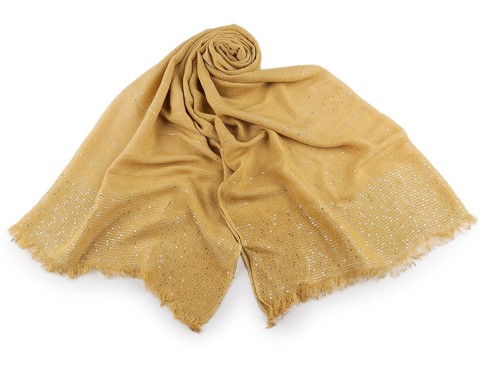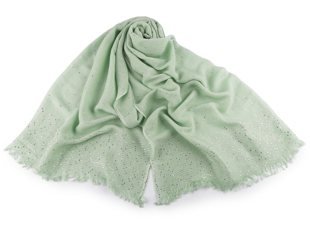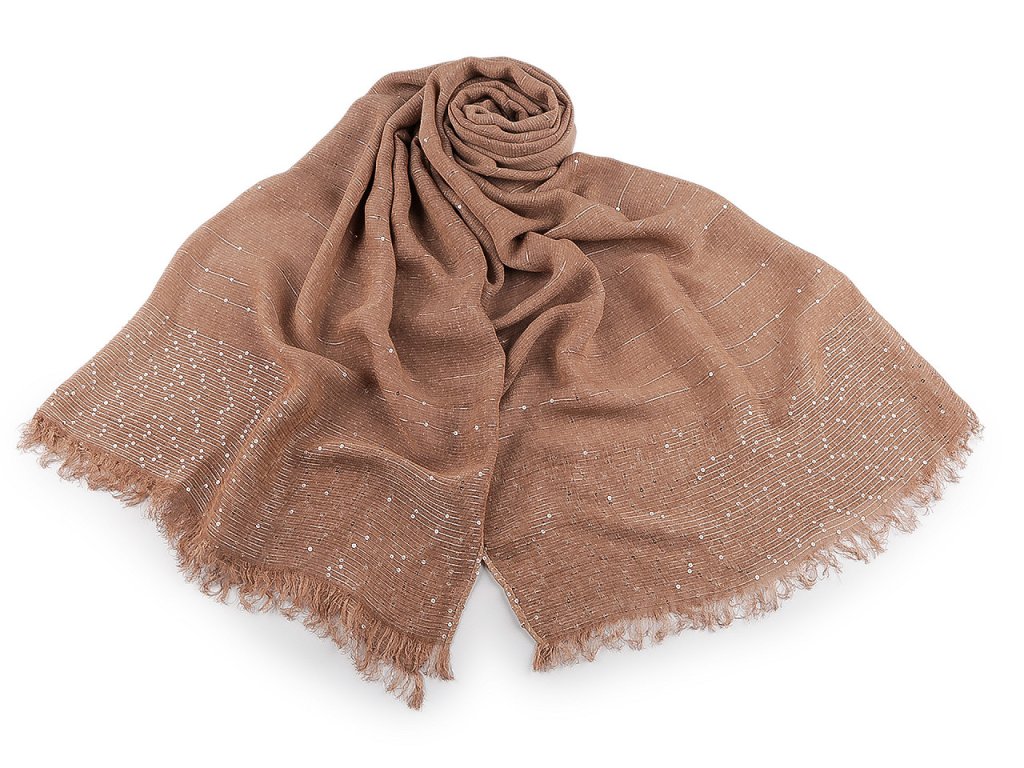 Elegantní bavlněný šátek s drobnými flitry je dokonalým doplňkem pro každou příležitost. Je oboustranný, flitry krásně zachycují světlo, vašemu outfitu dodají nádech luxusu. Materiál šátku je jemný a příjemný na dotek. Konce šátku jsou ozdobené jemnými třásněmi dlouhými 2 cm.