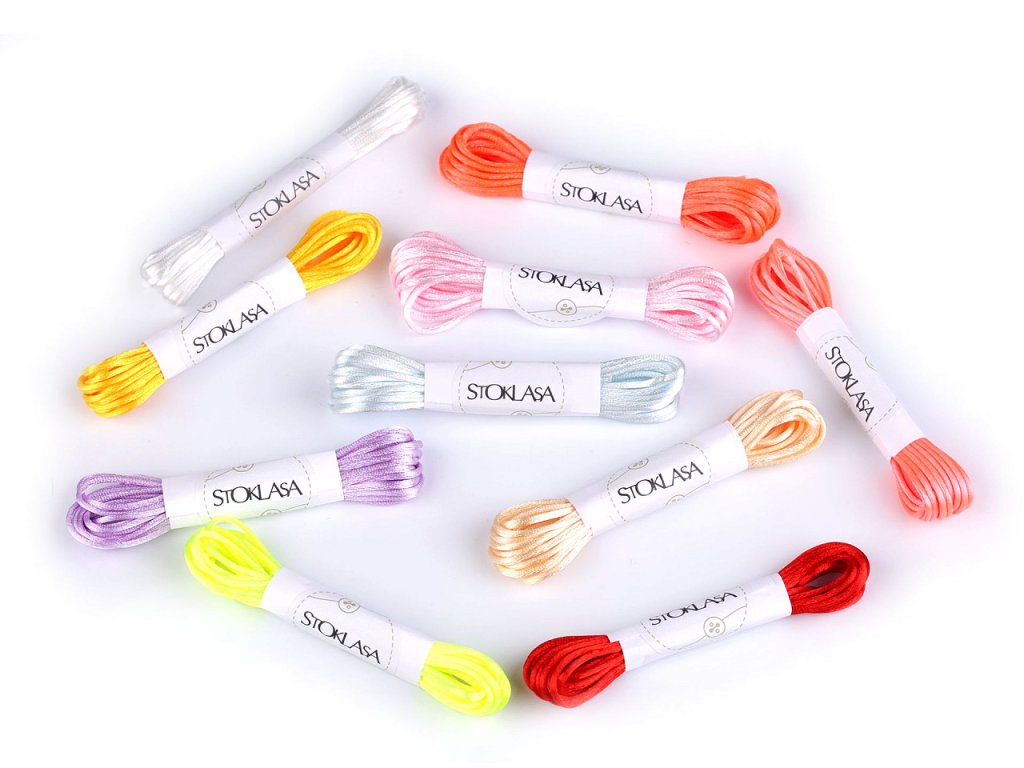 Použitie: Šnúru môžete použiť ako návlekový materiál na väčšie korálky. Pokiaľ radi tvoríte originálne výrobky, určite ju využijete na výrobu náramkov, náhrdelníkov alebo opaskov pomocou techniky kumihimo. Kumihimo je technika splietanie šnúr.