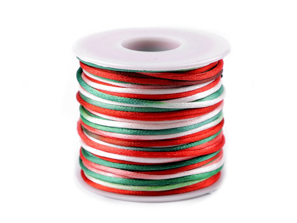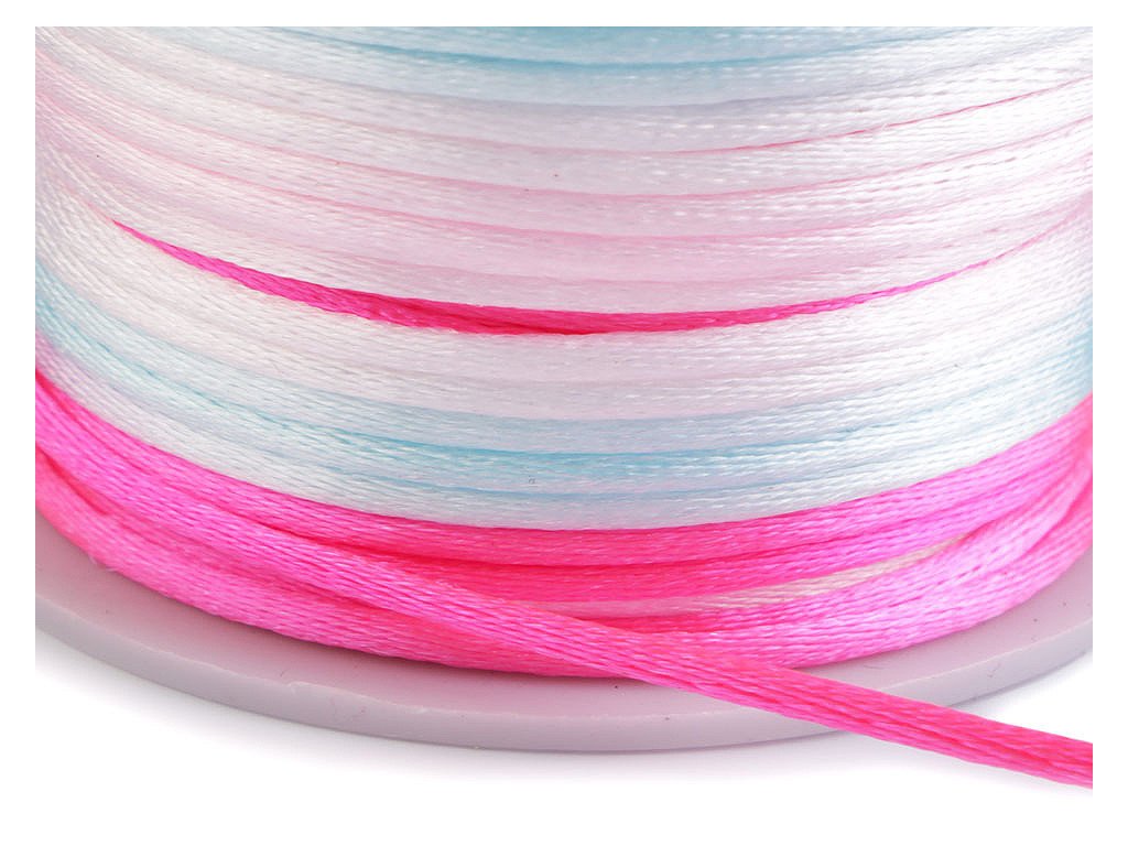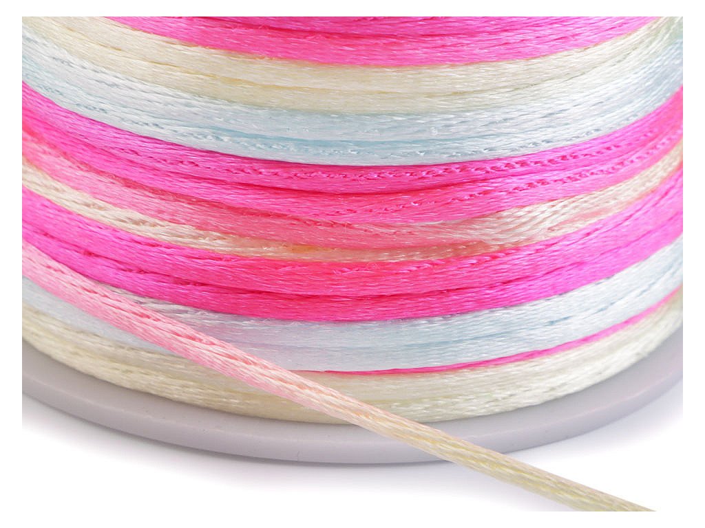 Saténová šnúra je zaujímavá svojim dúhovým zafarbením. Prechody medzi farbami sú plynulé. Šnúra je kvalitná a pevná.