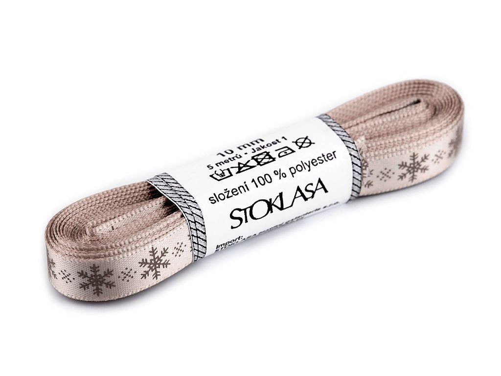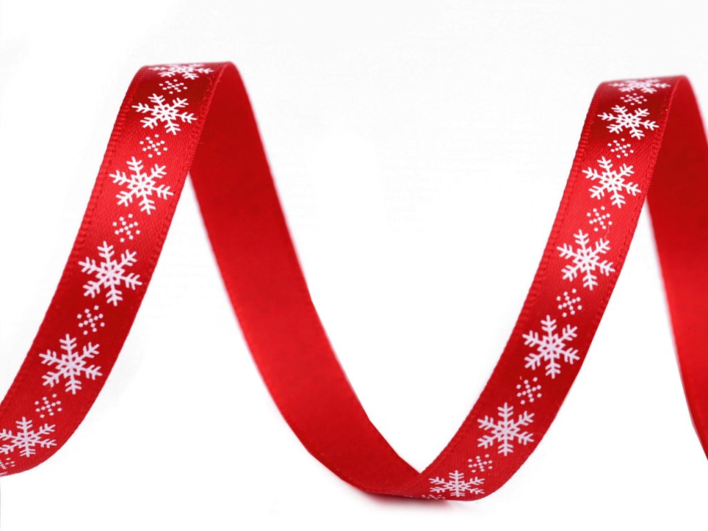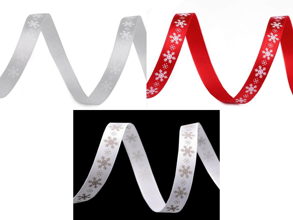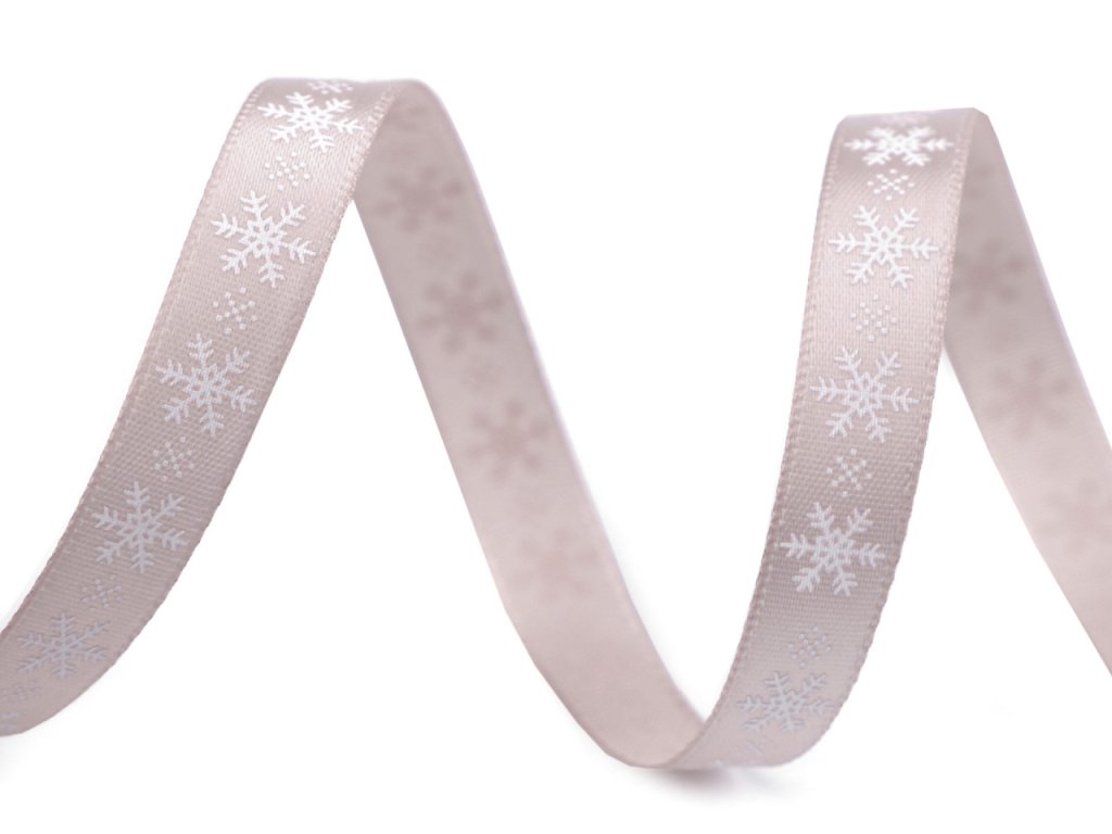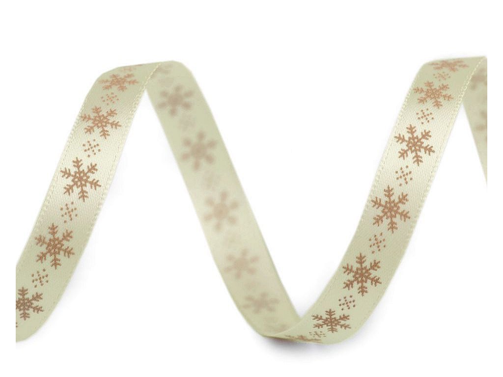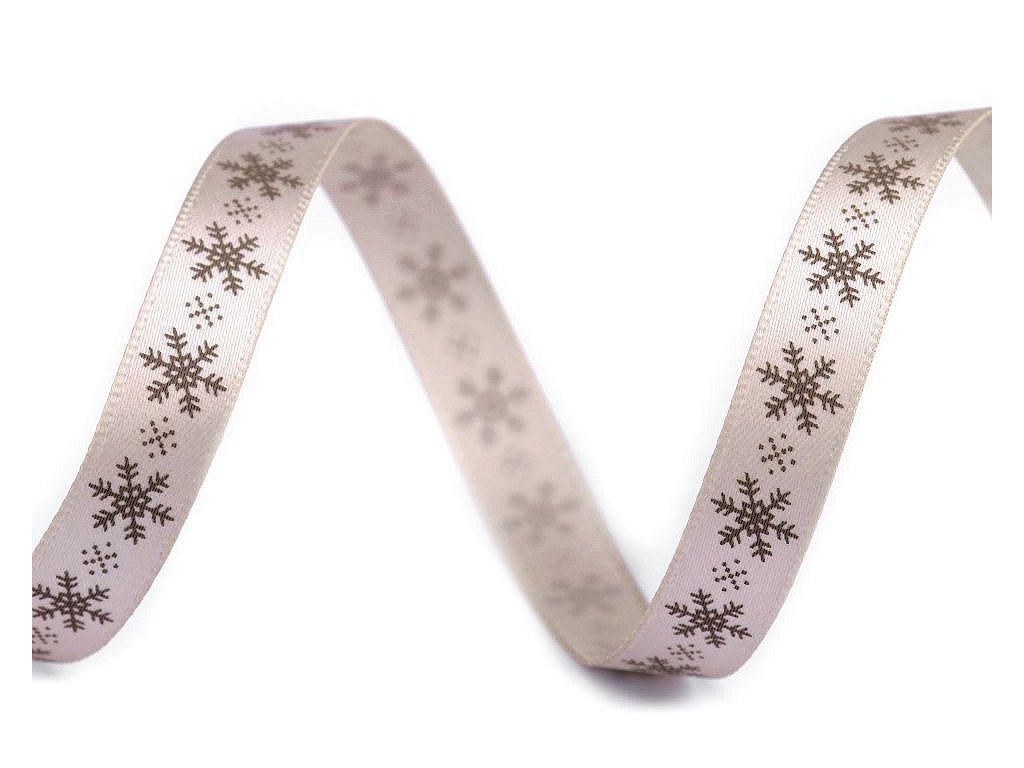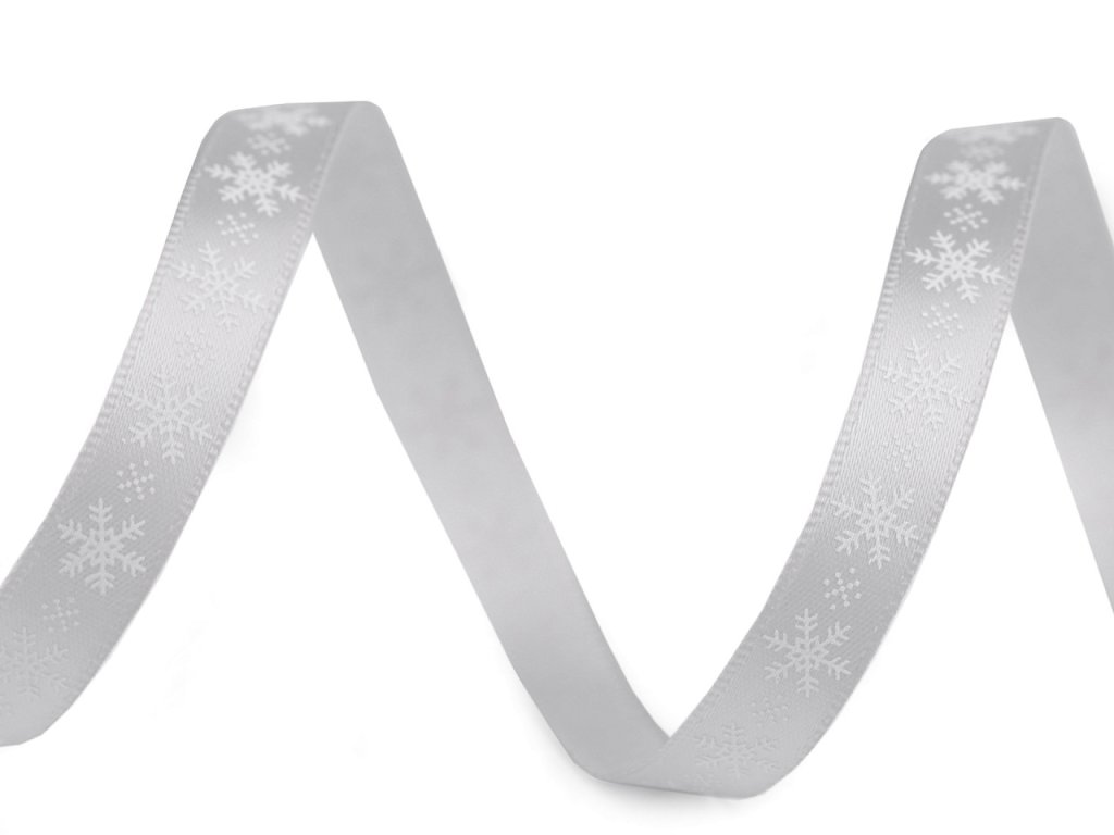 Saténová stuha s potiskem sněhových vloček. Potisk je jednostranný.