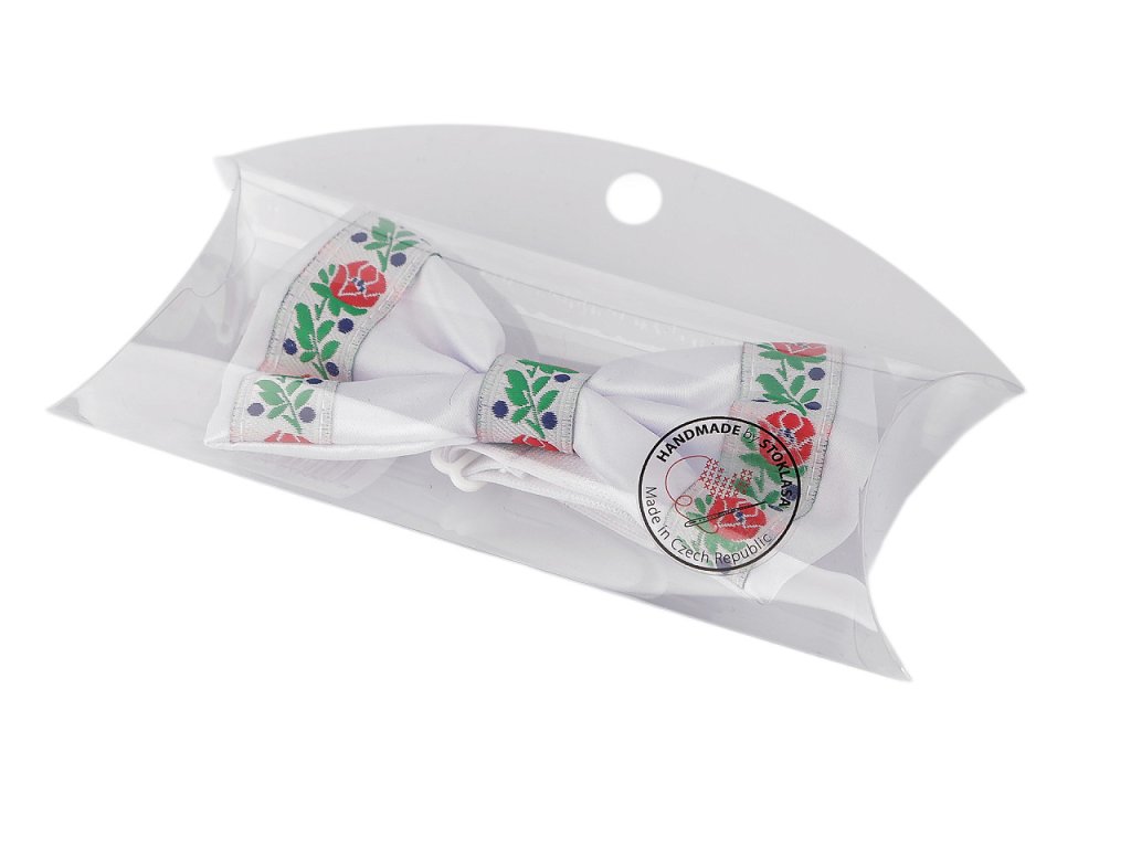 Saténový motýlek ve folklorním stylu je vhodným doplňkem k jakémukoli obleku - dodá mu osobitý šarm. Využijete jej na tematické plesy, taneční kurzy, svatby, návštěvy vinných sklípků, vernisáží apod.