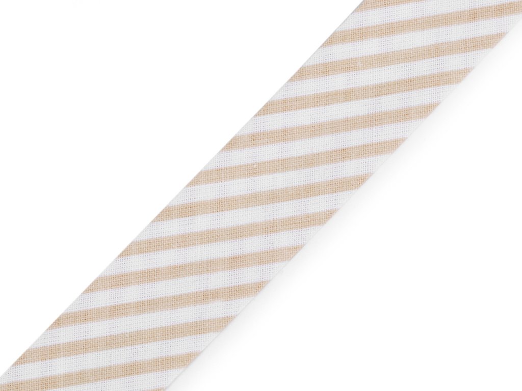 Bavlněný šikmý proužek s různými motivy je pevný a zažehlený. Po našití má poloviční šíři tzn., že tento proužek bude mít po našití šíři 10 mm.